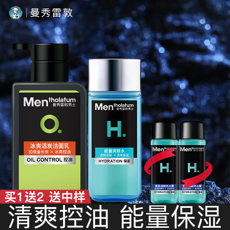 曼秀雷敦男士专用补水保湿控油能量爽肤水洗面奶护肤品套装须后水
