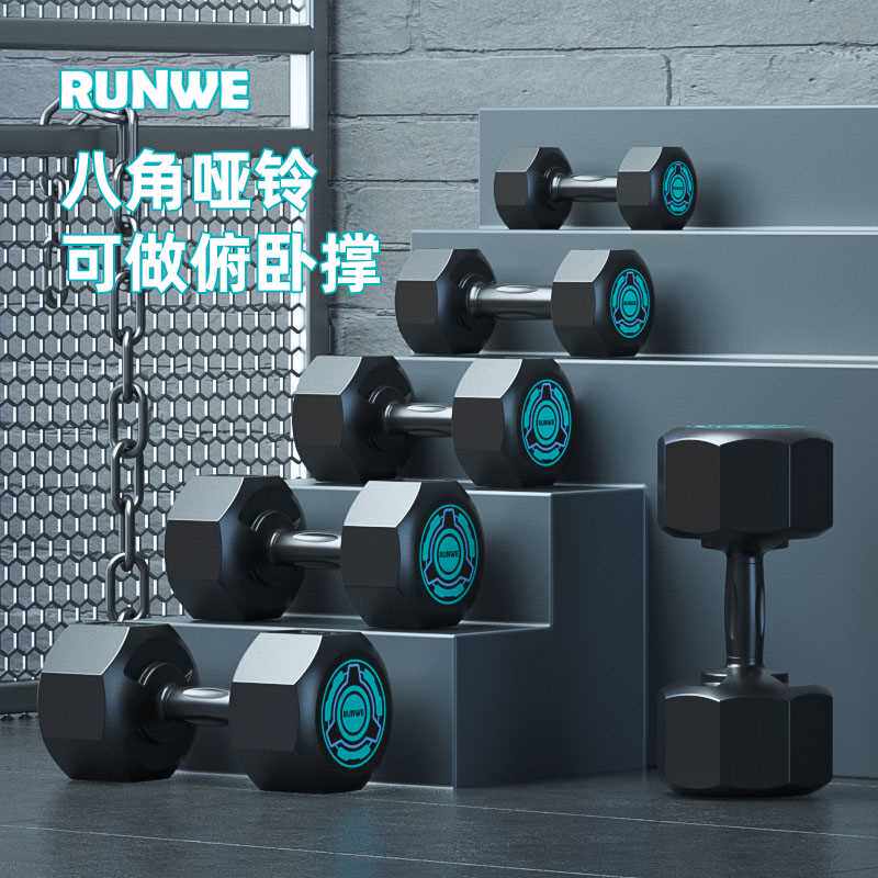 朗威固定哑铃男士健身家用健身房专用商用包胶哑铃套装健身器材