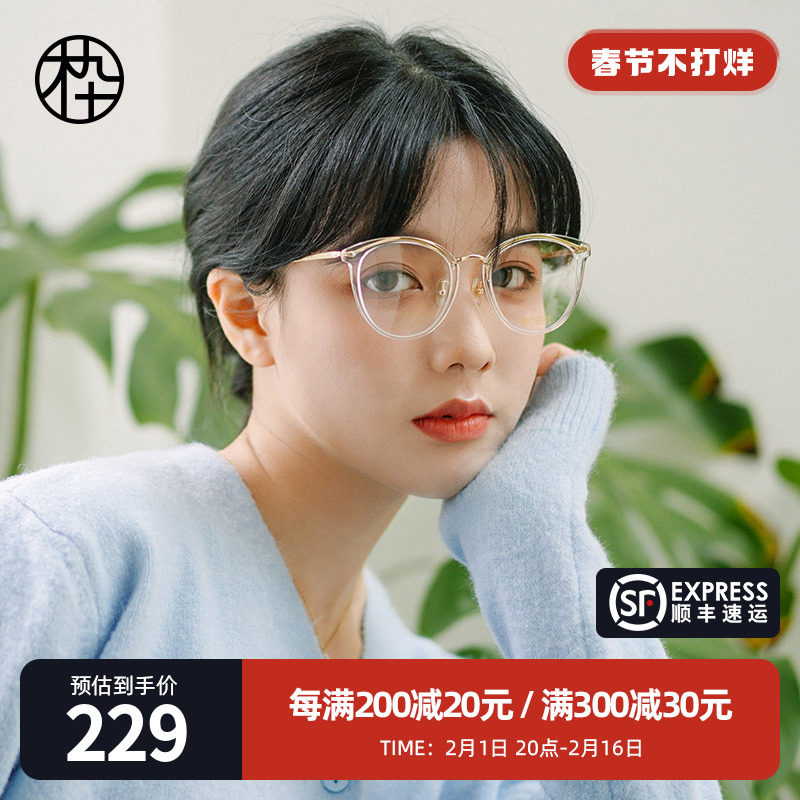 木九十透明框眼镜女近视可配素颜神器MJ101FH006板材眼镜框镜架男
