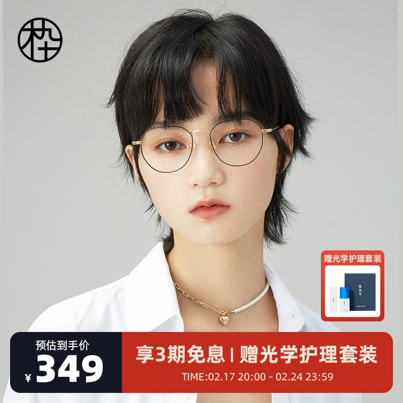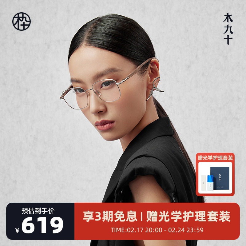木九十素颜眼镜框女近视可配度数MJ101FG044钛架镜框椭圆框眼镜男