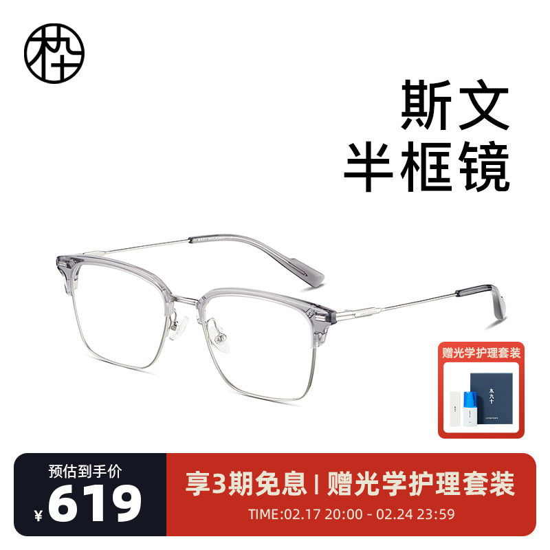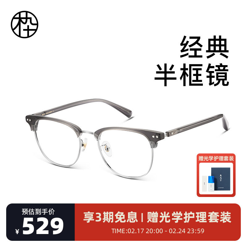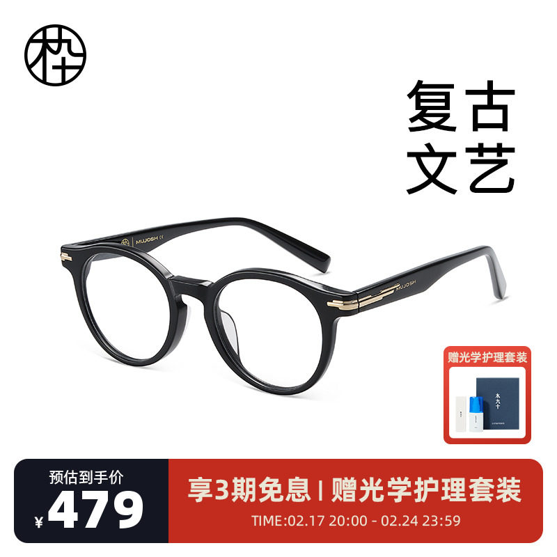 木九十近视眼镜女可配度数镜片MJ101FH008男款透明镜架板材眼镜框