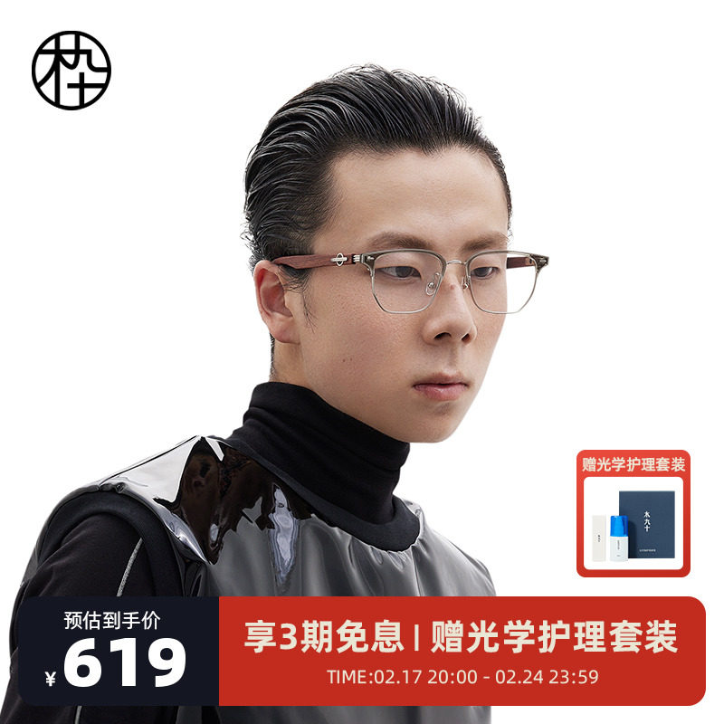 木九十近视眼镜可配度数男女同款轻盈钛合金镜腿眼镜框MJ101FJ058