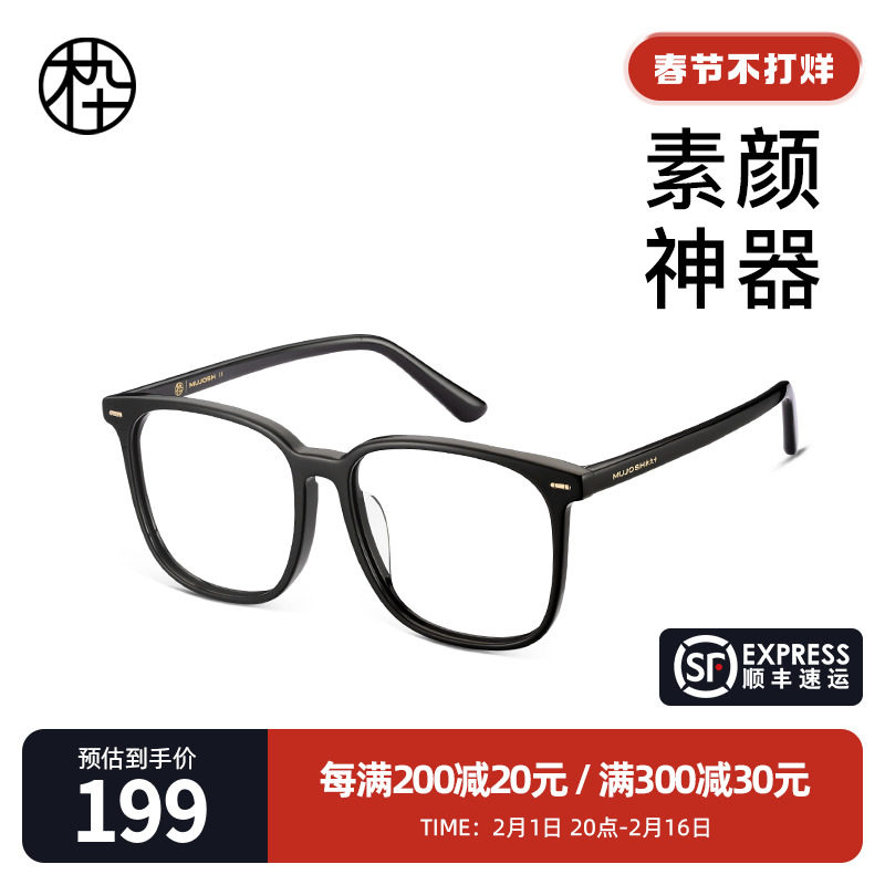 木九十素颜板材近视眼镜女可配度数MJ101FJ409黑框眼睛框镜架男