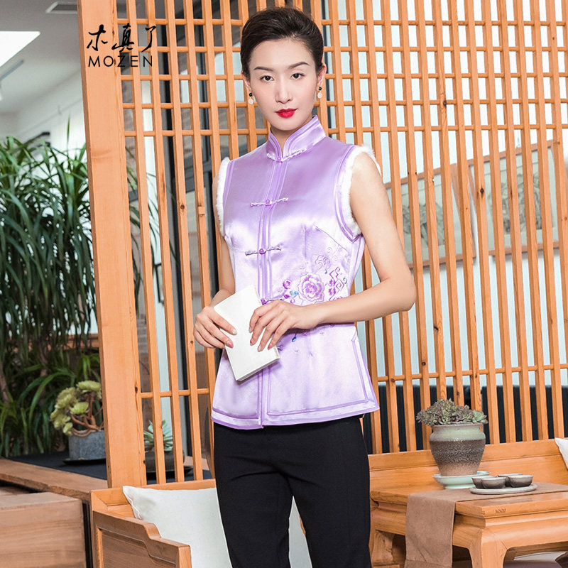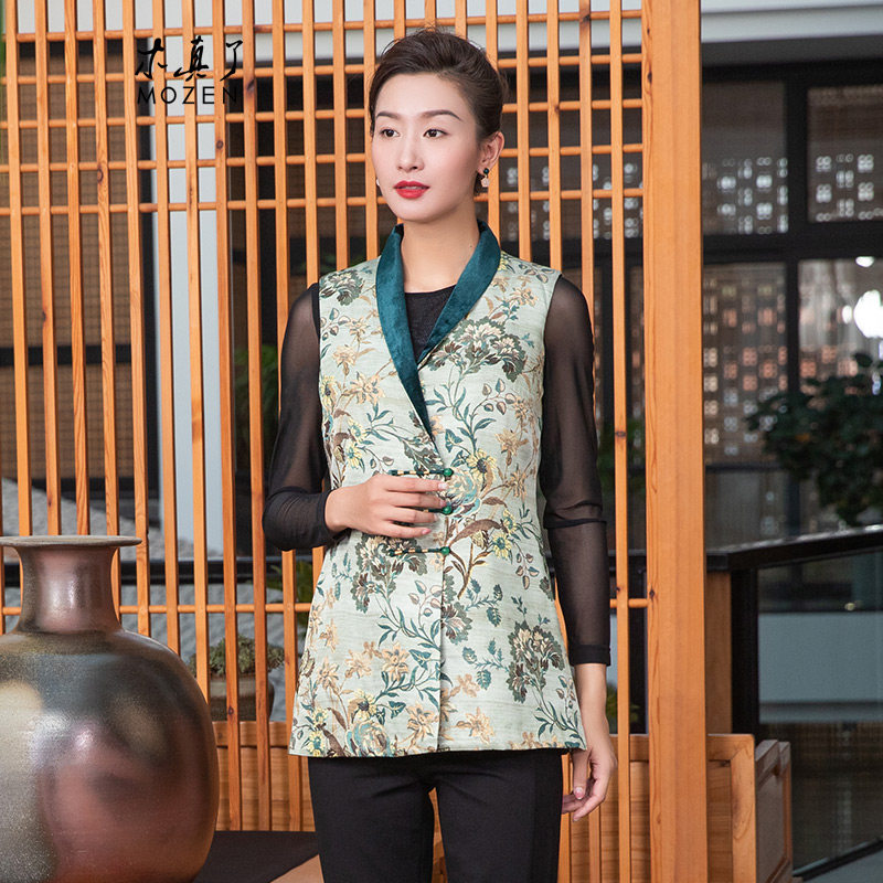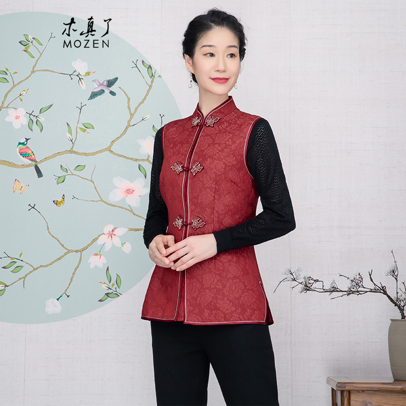 木真了女马夹秋冬新品中式办公室保暖妈妈马甲无袖外穿坎肩104