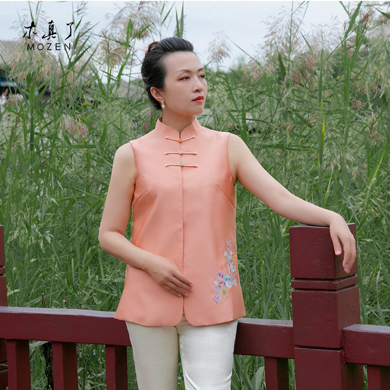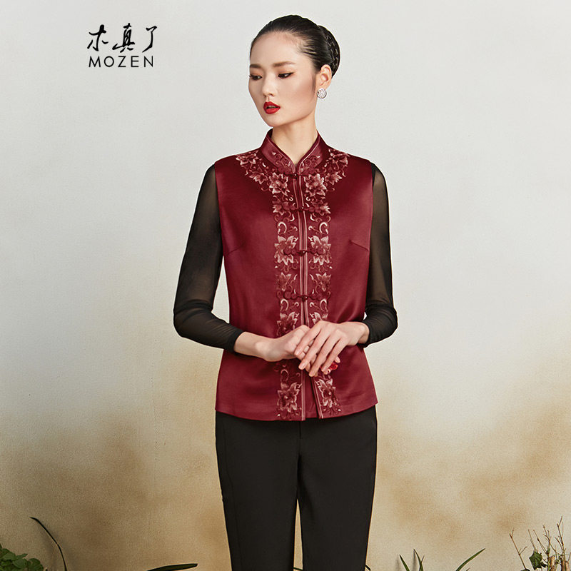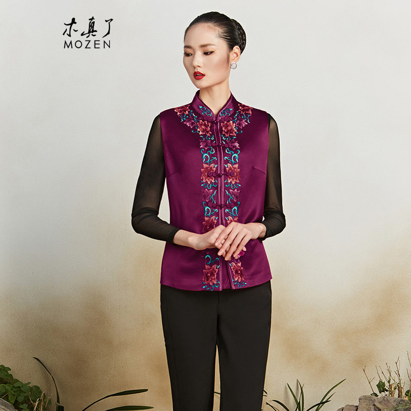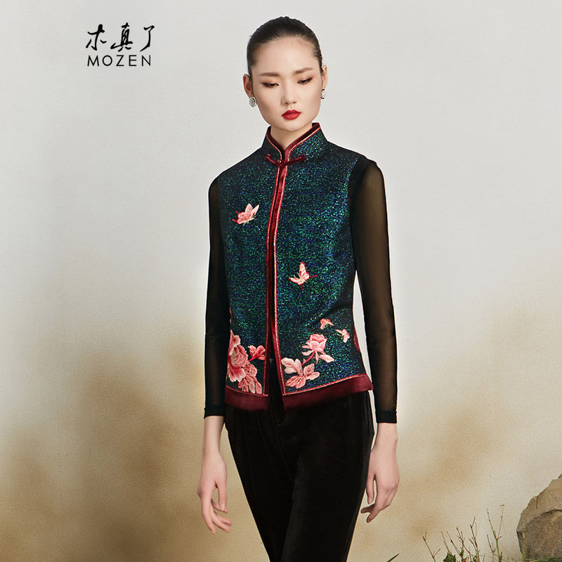 木真了唐装马甲女士保暖上衣新品中国风花卉刺绣宽松短款马夹417
