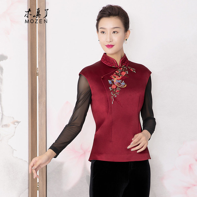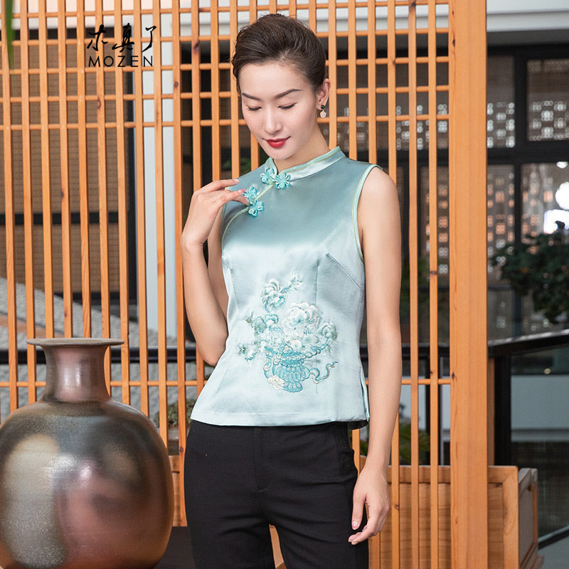 木真了改良唐装上衣马夹冬新品中国风刺绣薄棉偏襟短马甲304