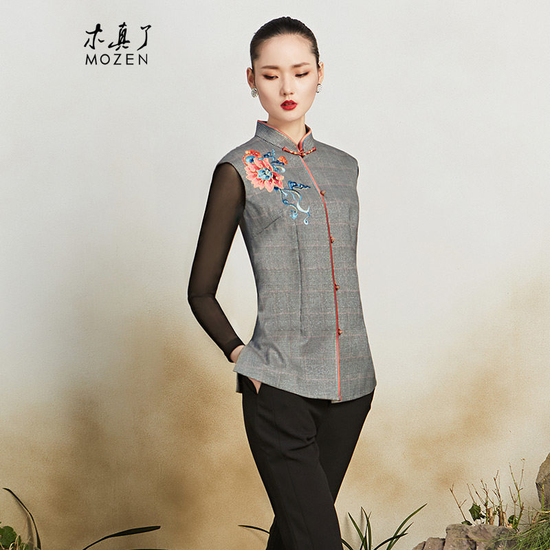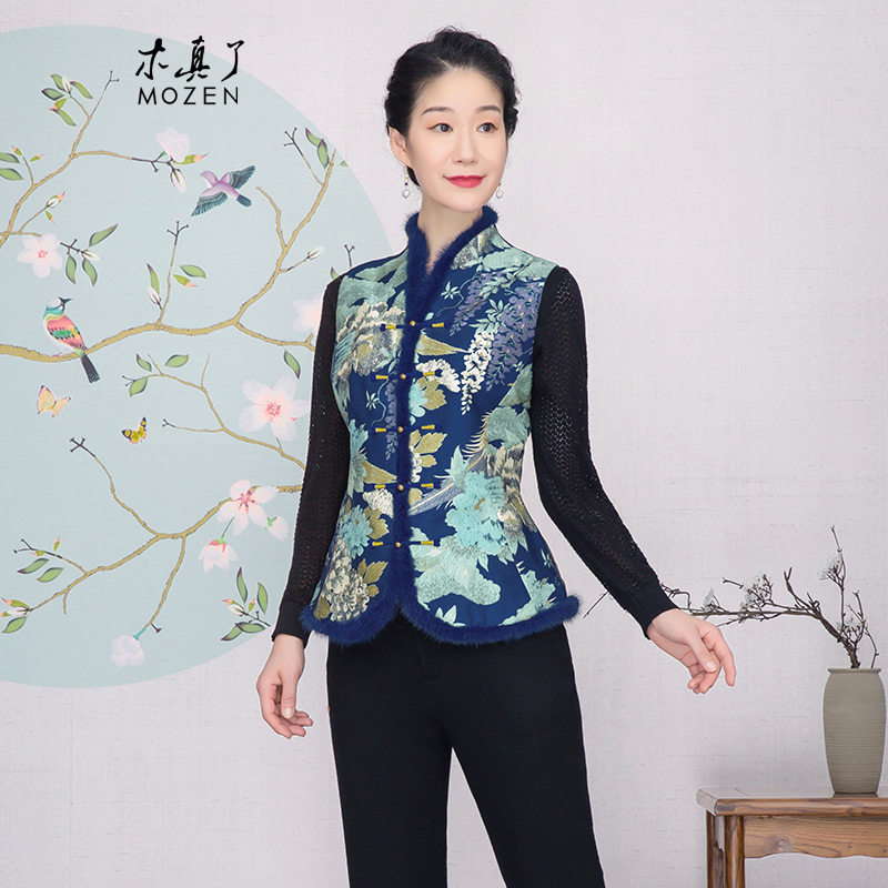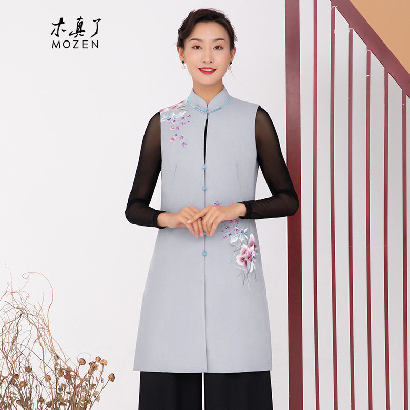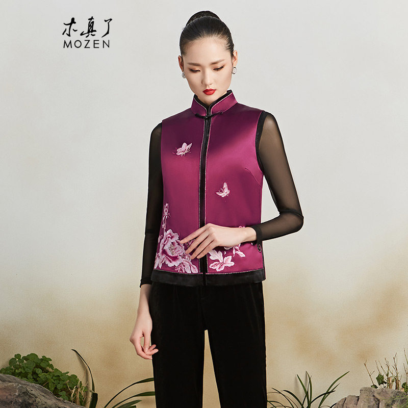 木真了唐装马夹女装秋冬外套新品中式立领刺绣宽松保暖马甲103