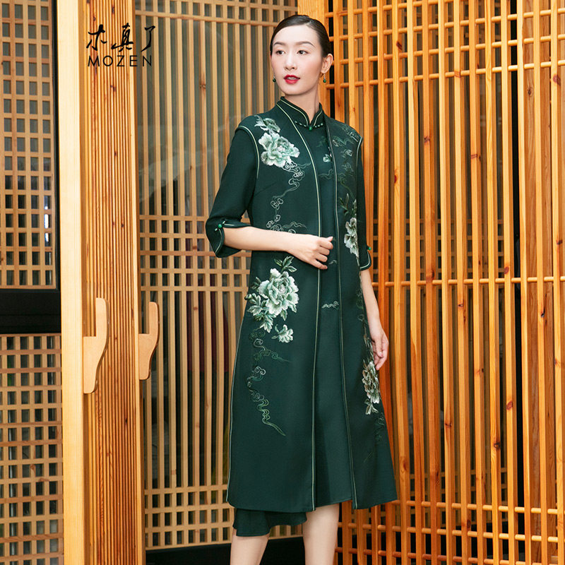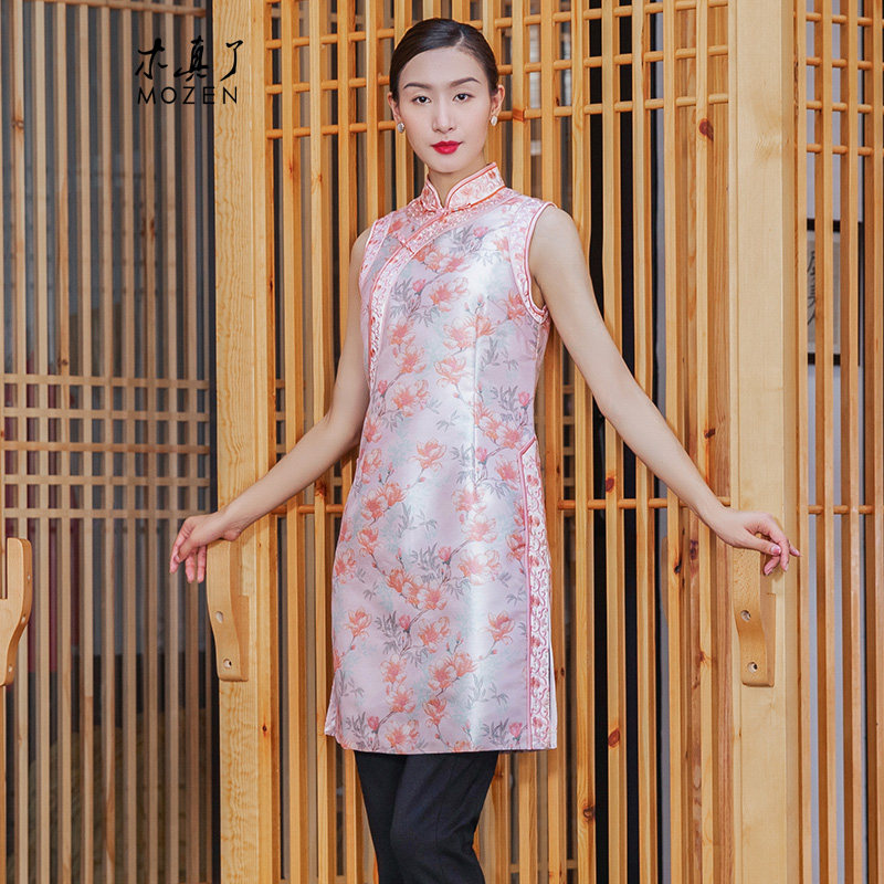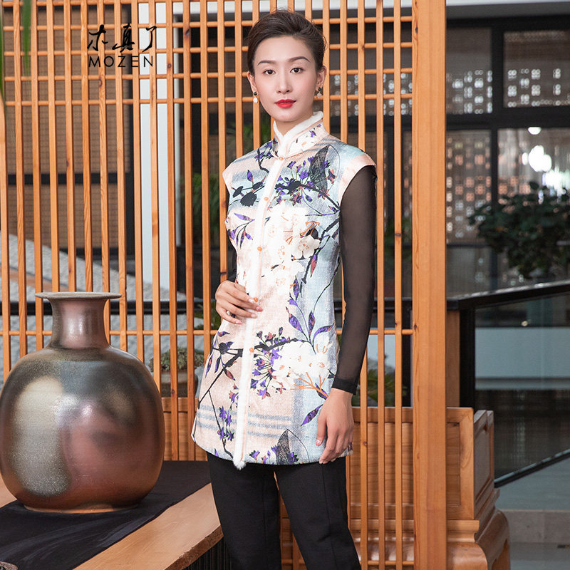 木真了唐装夹棉玉兰印花上衣新品改良刺绣中长款保暖马甲117