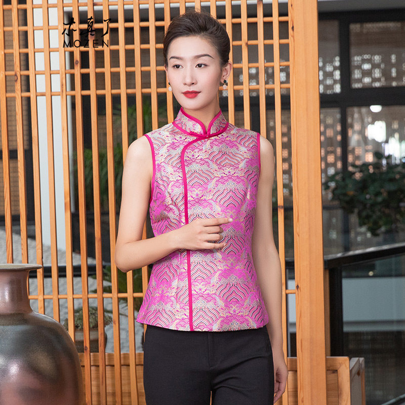 木真了复古唐装夹棉马夹新品中国风织锦缎修身薄棉短马甲906