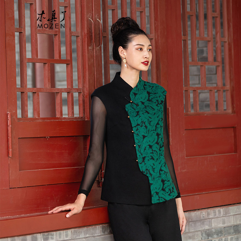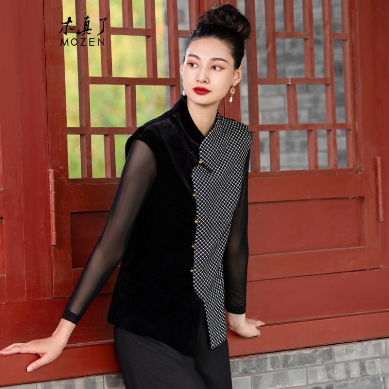 木真了唐装马夹新品丝绒复古拼接办公室通勤保暖马甲960