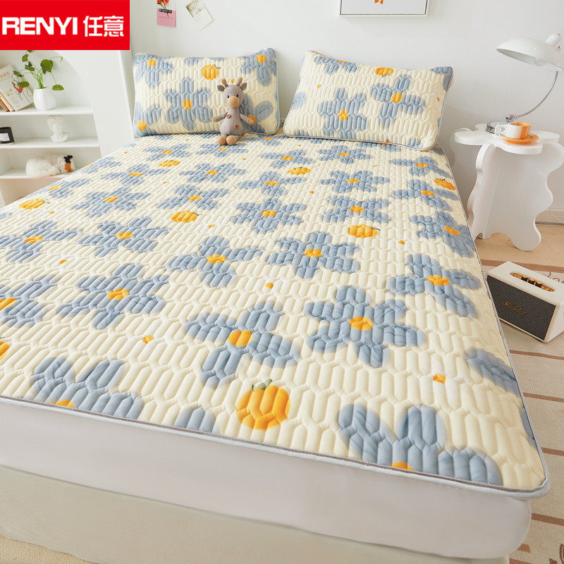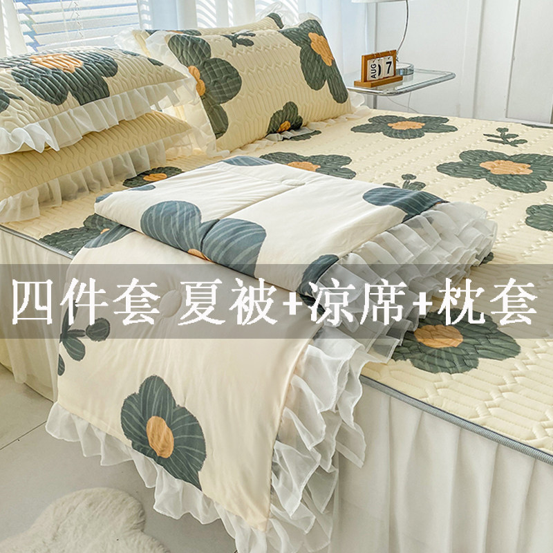 可折叠水洗床裙款乳胶凉席四件套冰丝空调被夏季卡通夏凉被软席子