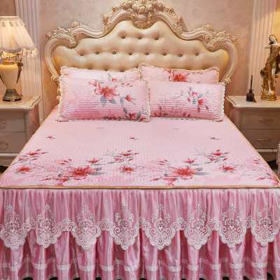 乳胶冰丝凉席床裙款三件套夏天空调软席子床单带裙摆二合一单双人