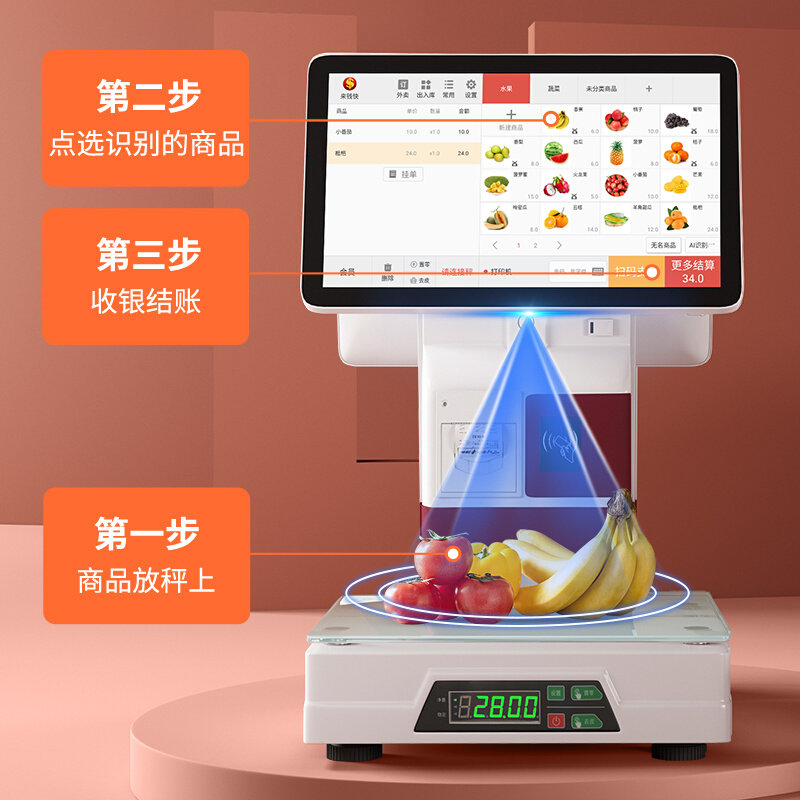 来钱快ai称重收银机一体机带秤生鲜超市水果店麻辣烫电子收银秤