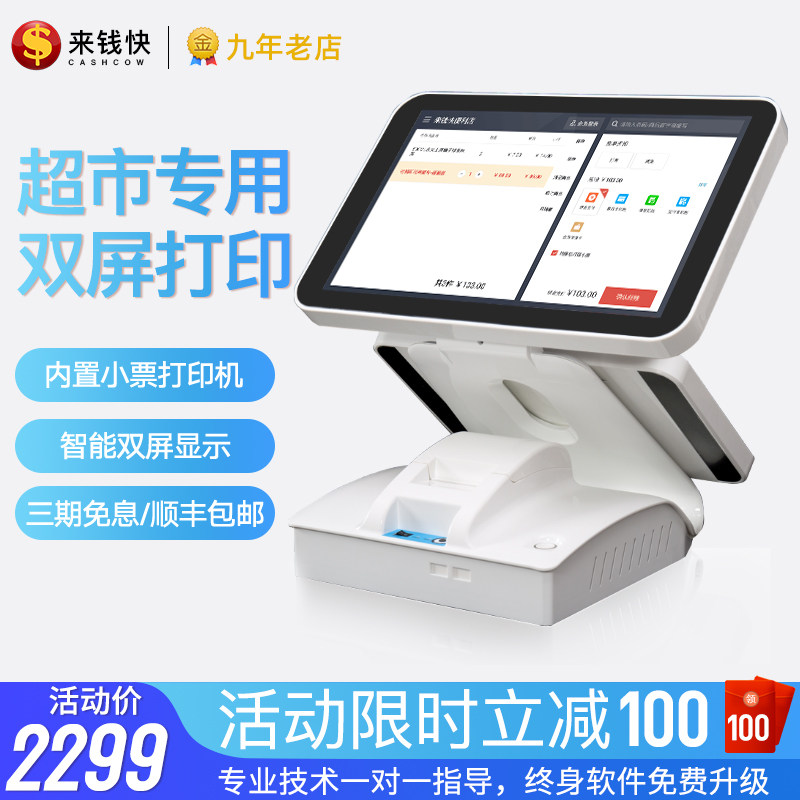 来钱快超市收银机一体双屏触摸屏水果便利店扫码收银系统收款机