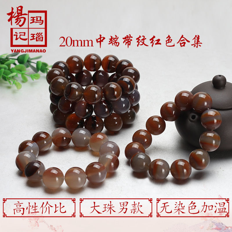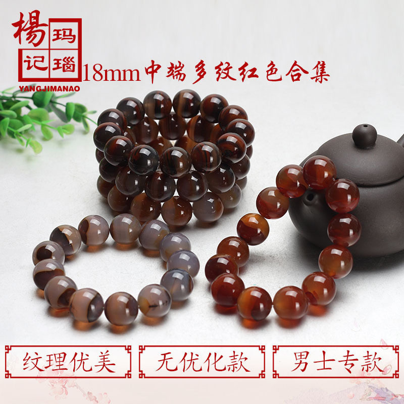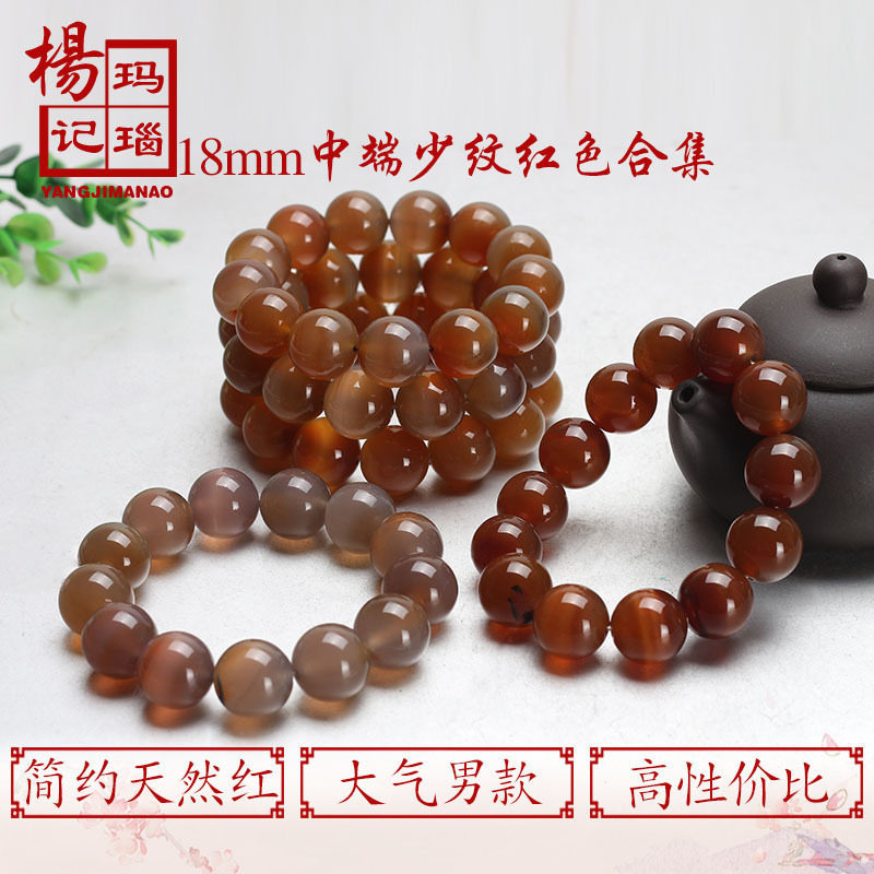 中端阜新杨记玛瑙手串天然男士手链18mm红色同料玉石大珠配饰
