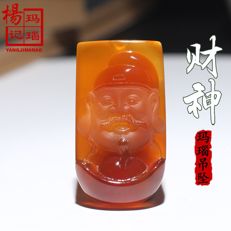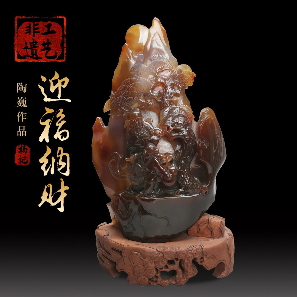 天然玛瑙摆件《迎财纳福》财神招财童子精雕室内桌面摆件家居饰品