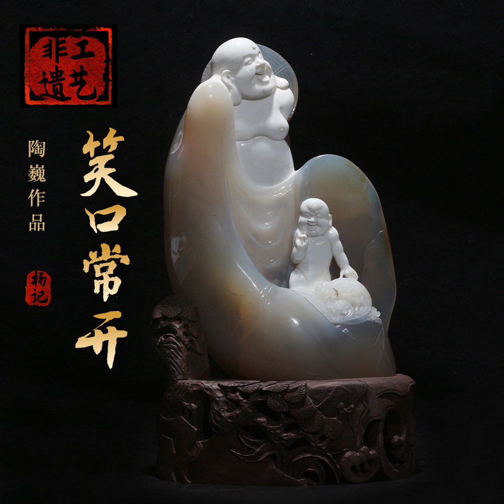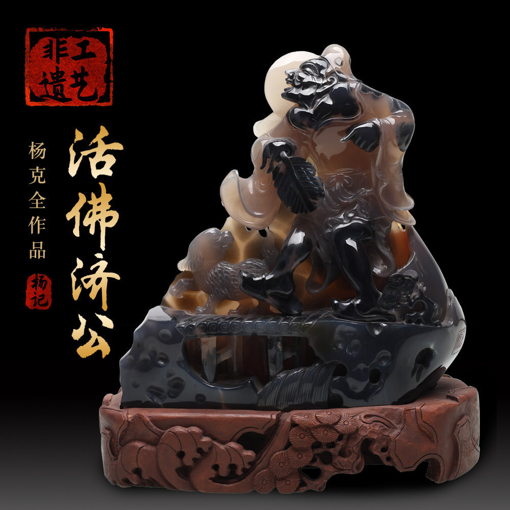 杨记精雕天然玛瑙摆件《活佛济公》纯原石原色名师客厅收藏工艺品