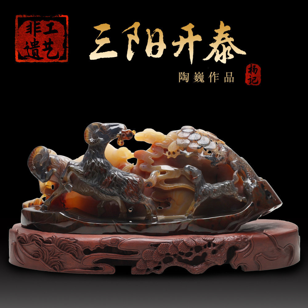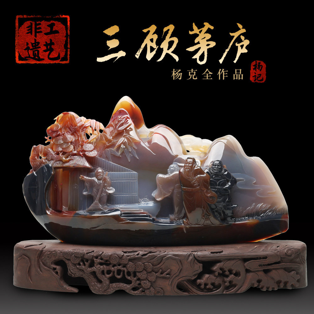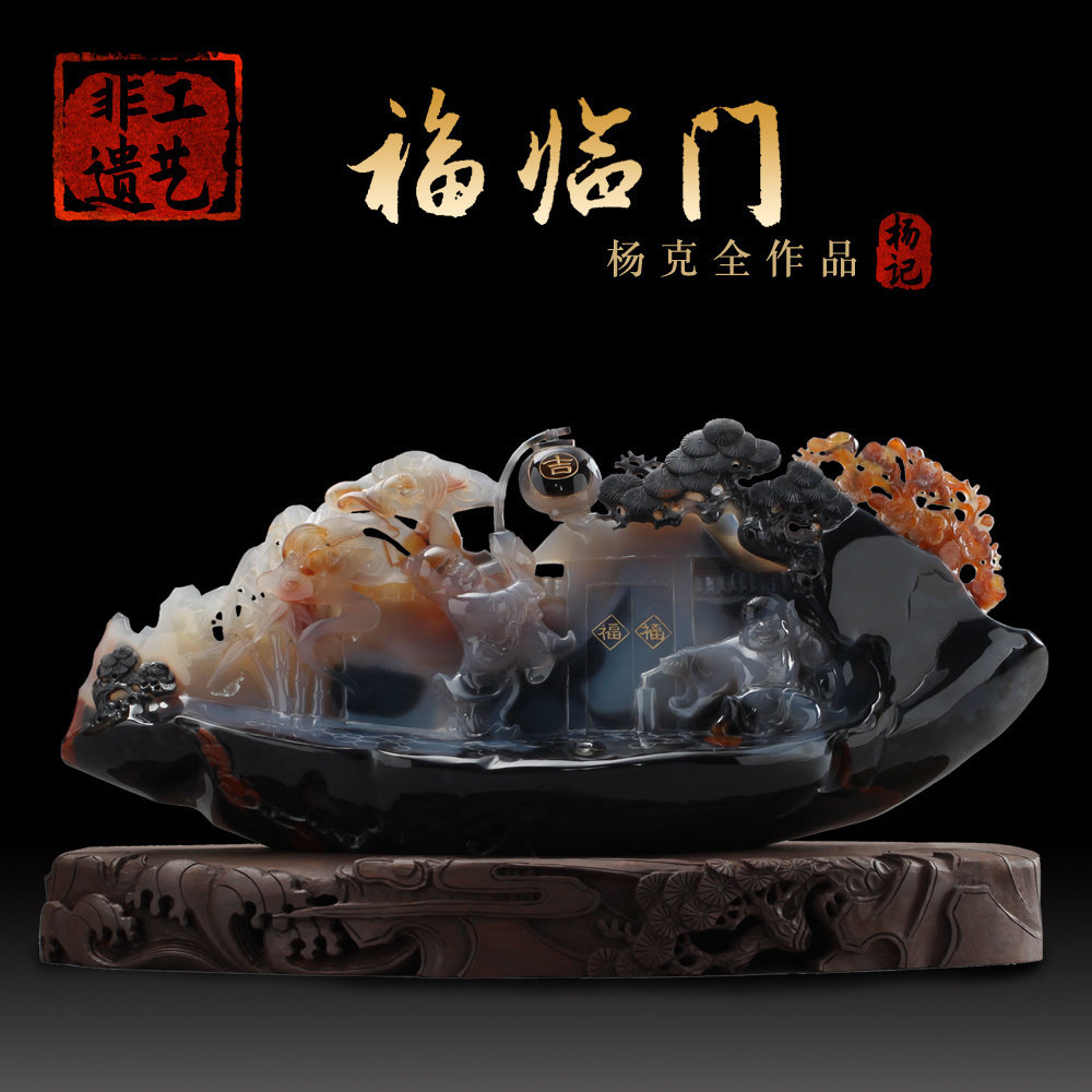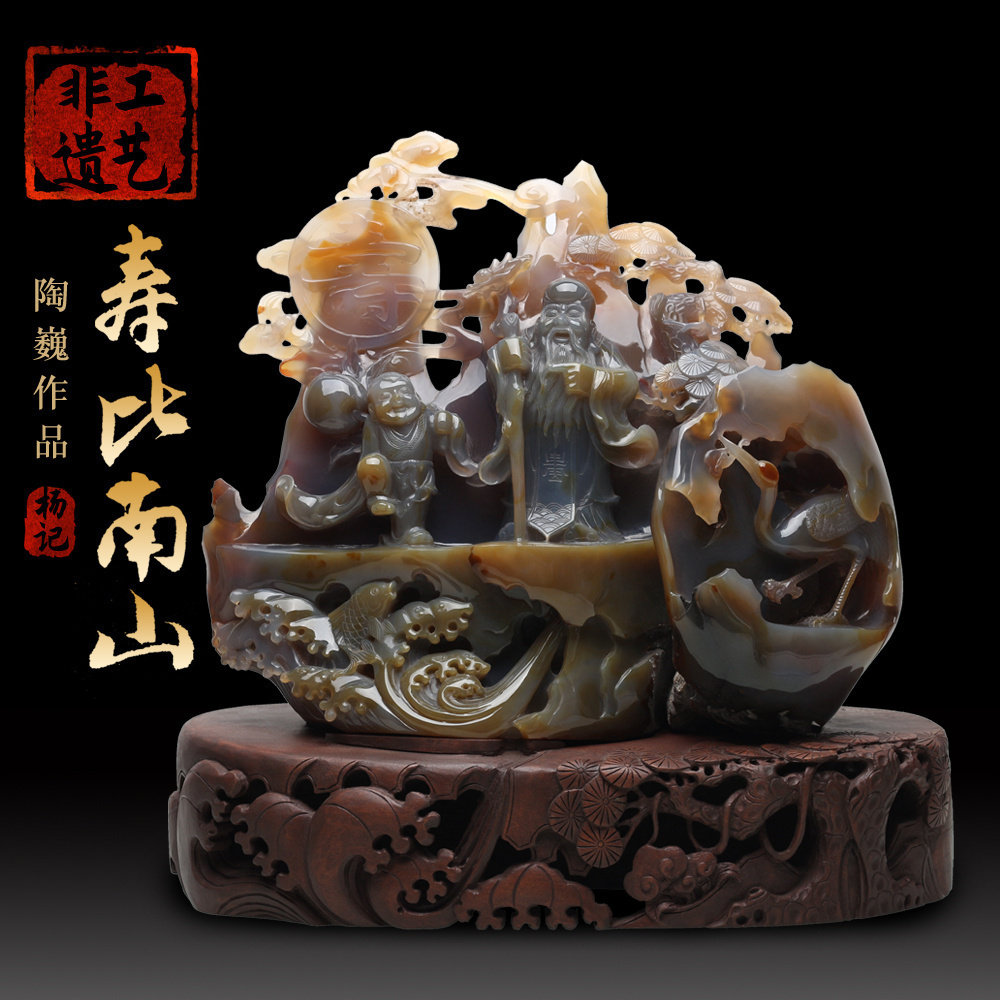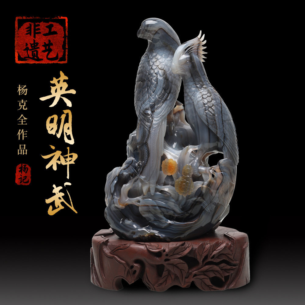 非物质文化遗产天然玛瑙雕刻摆件《英明神武》中式客厅藏品送领导