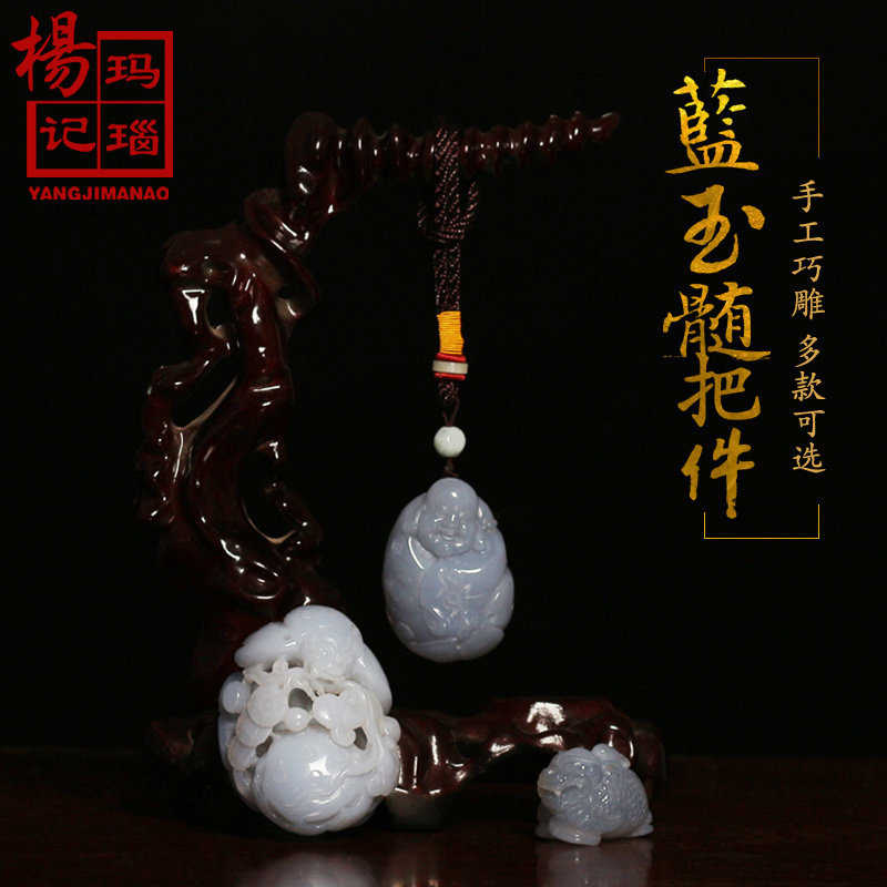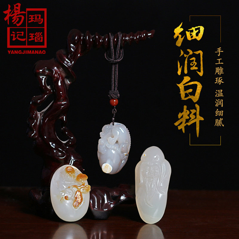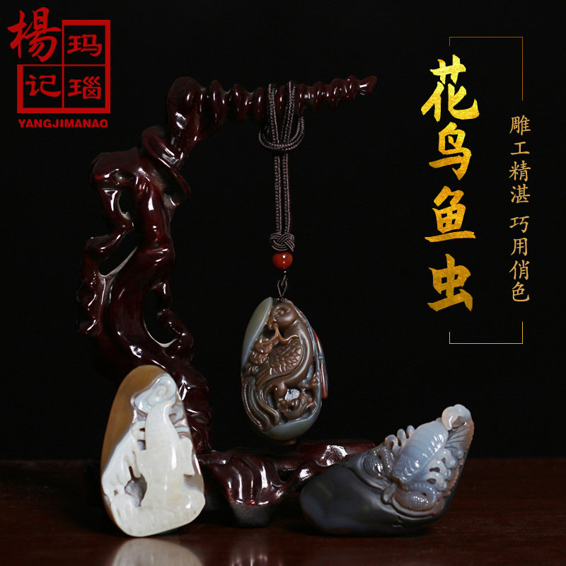 天然纯原色玉石玛瑙手把件花鸟鱼虫仙鹤雕刻工艺品挂件小摆件证书