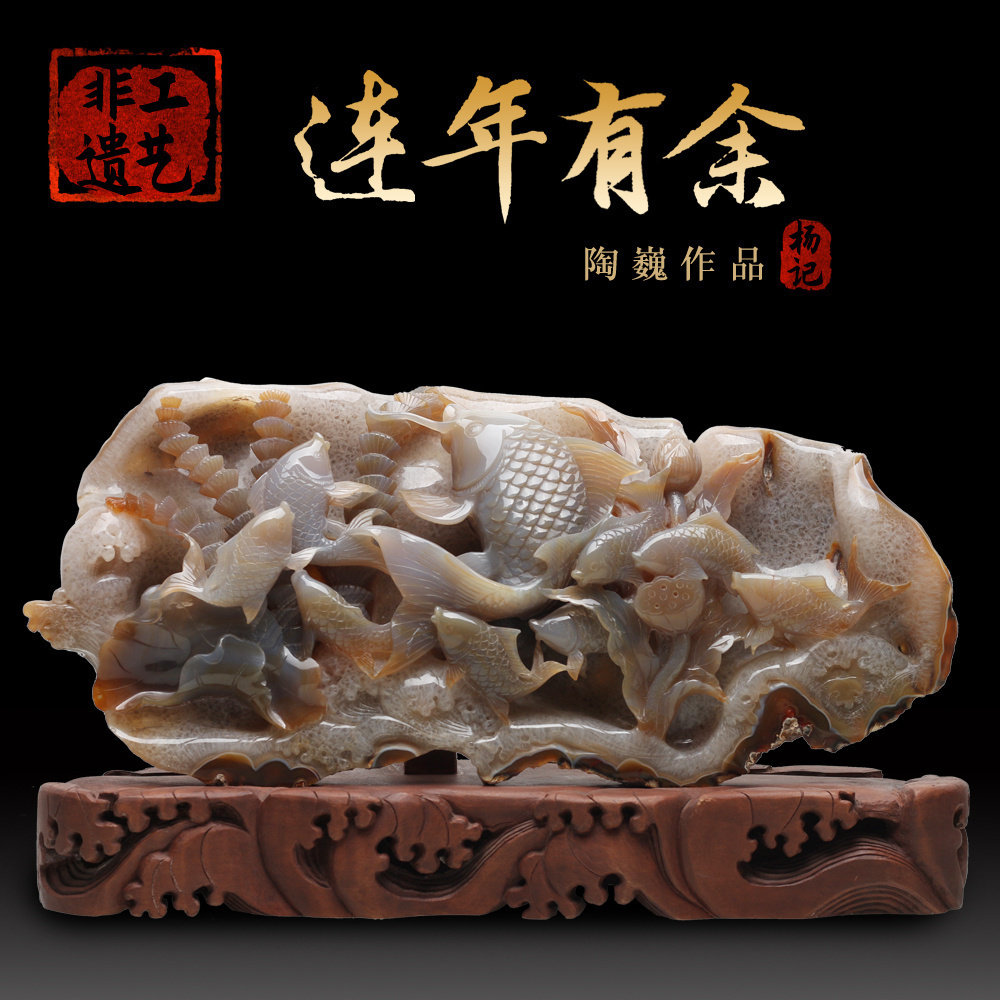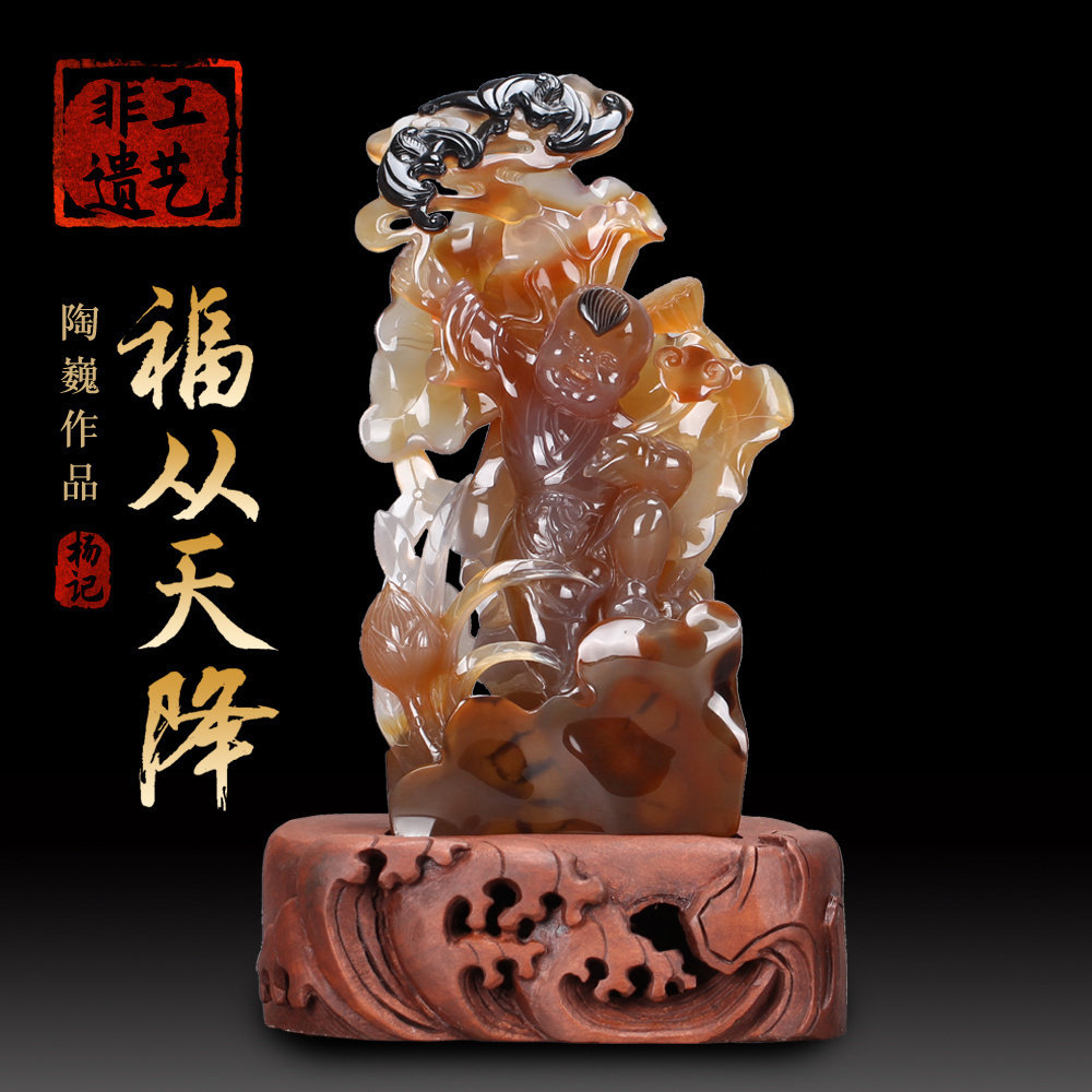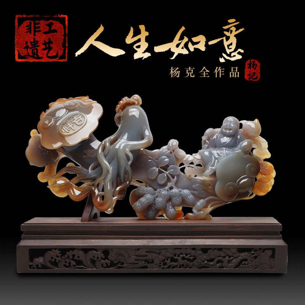 天然纯玛瑙摆件《人生如意》中式样板间客厅居家装饰办公室摆设