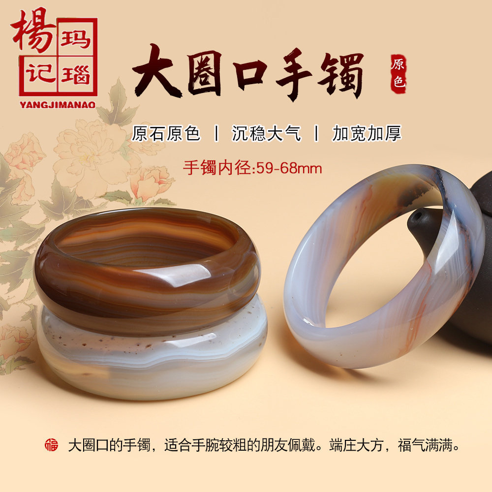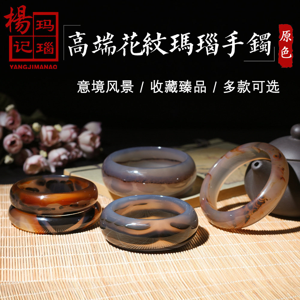 天然花纹玛瑙手镯冰透润红黑紫玉镯子加宽加厚意境送妈妈女友礼物