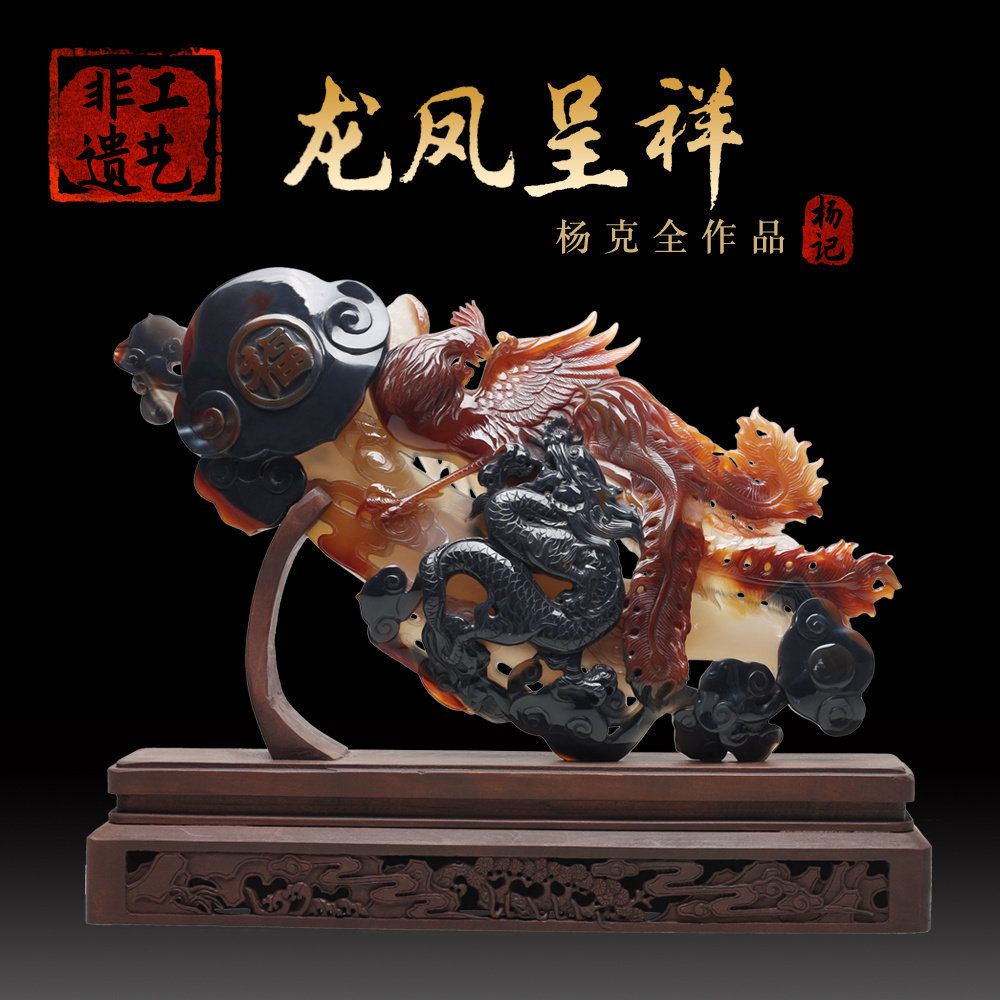 杨记杨克全大师作品凤凰雕刻壶玛瑙摆件艺术品带收藏证送长辈领导