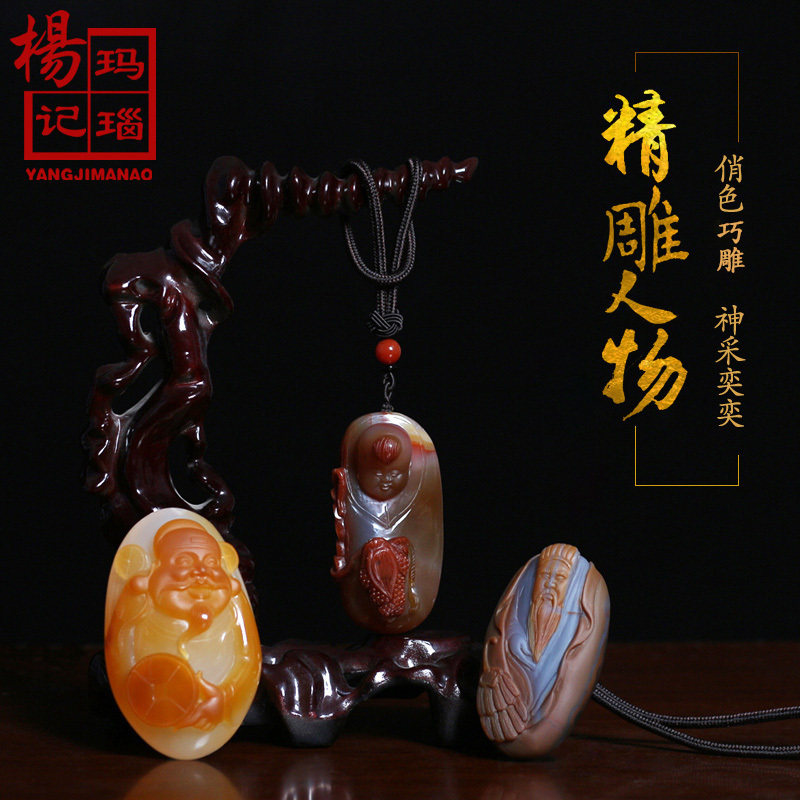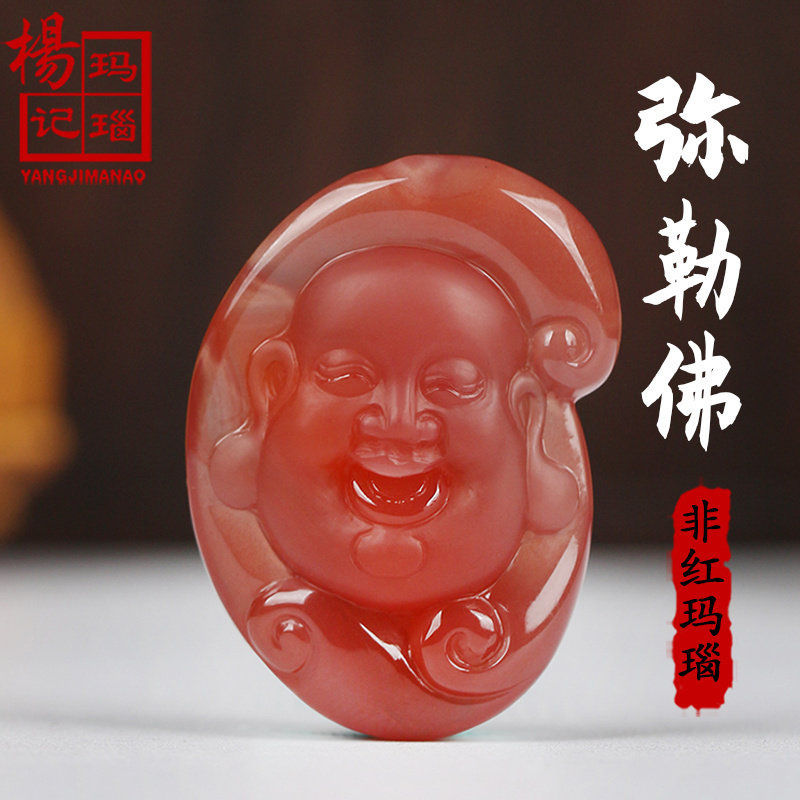 弥勒佛天然非红玛瑙吊坠笑佛双面雕刻知足常乐挂坠女玉石配饰新品