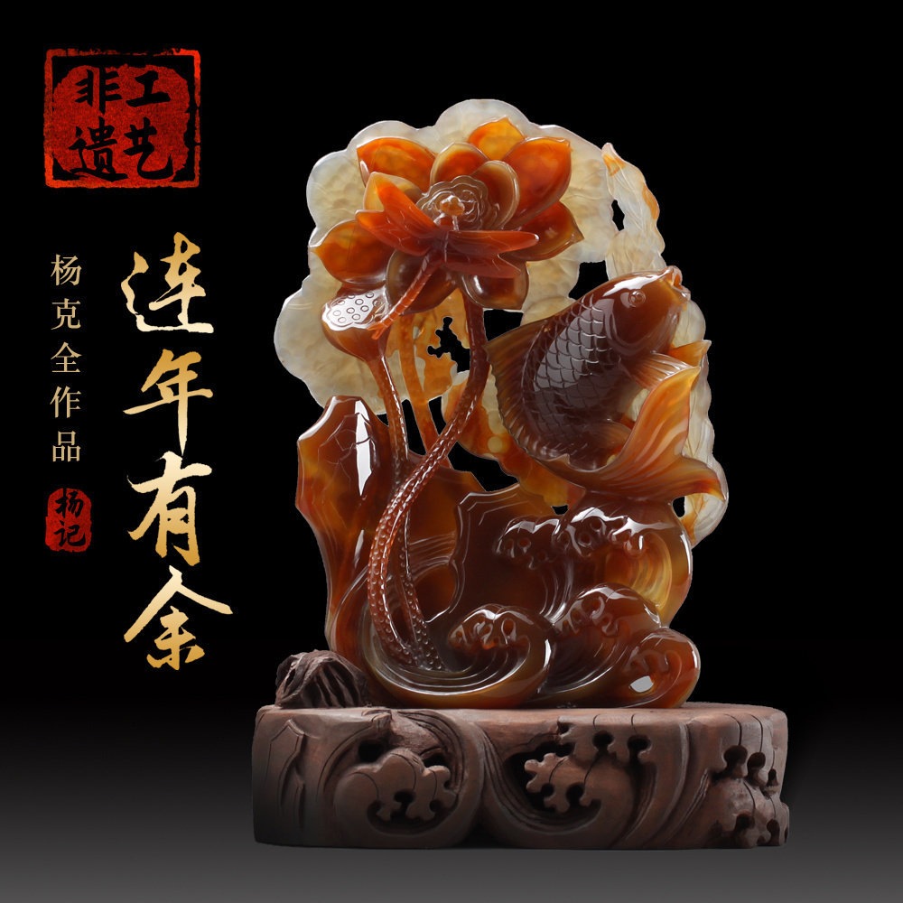 杨克全大师作品天然玛瑙摆件《莲生贵子》俏色精雕新房收藏艺术品