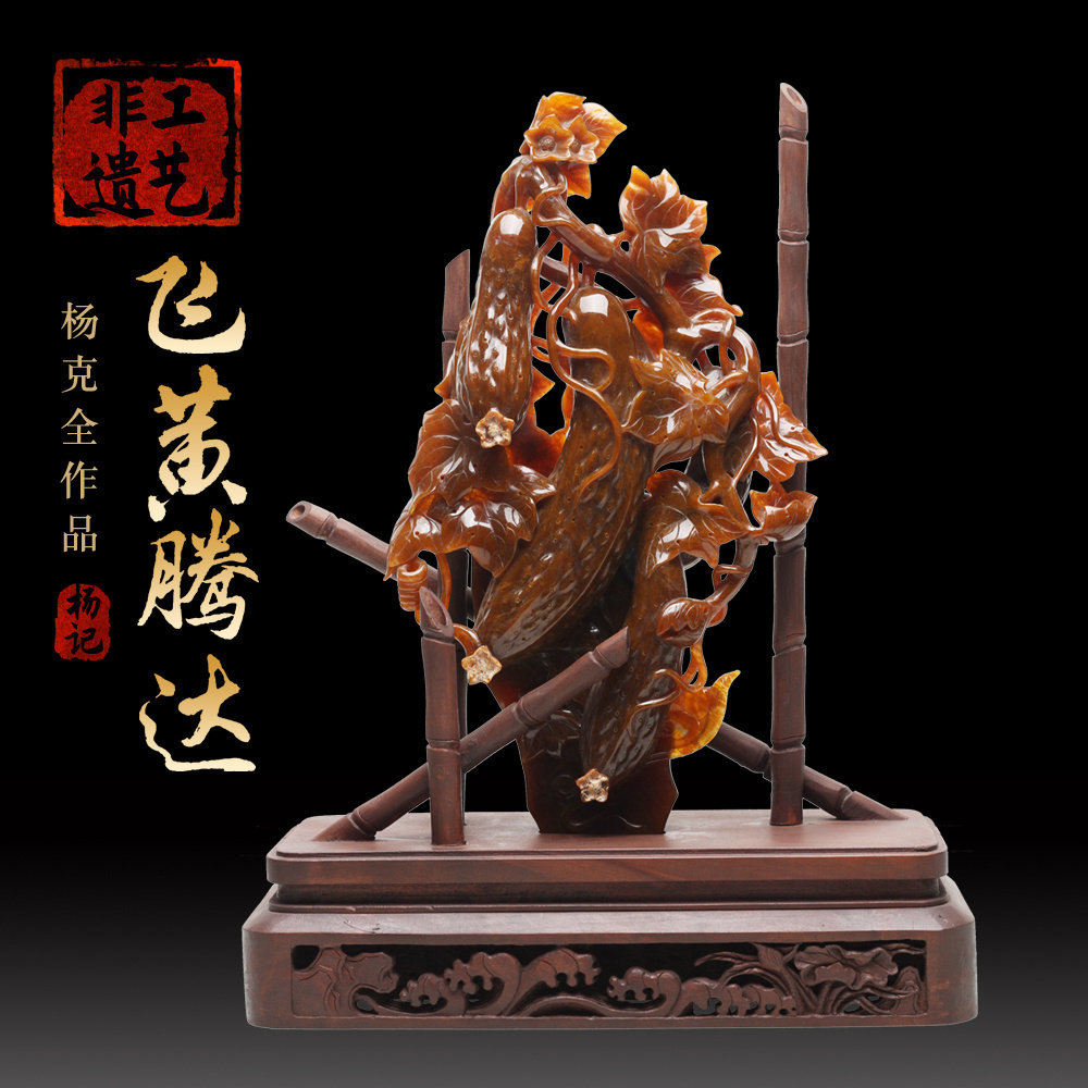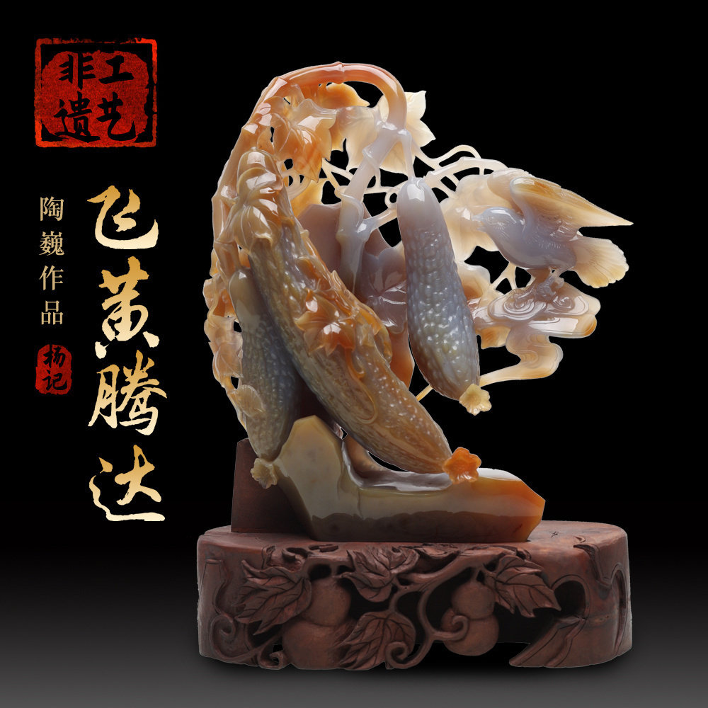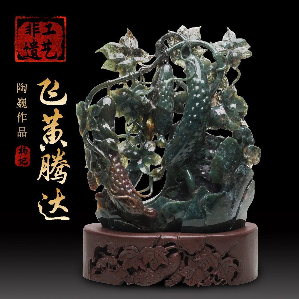 阜新本地水草玛瑙摆件《飞黄腾达》俏色黄瓜陶巍大师作品镂空精雕