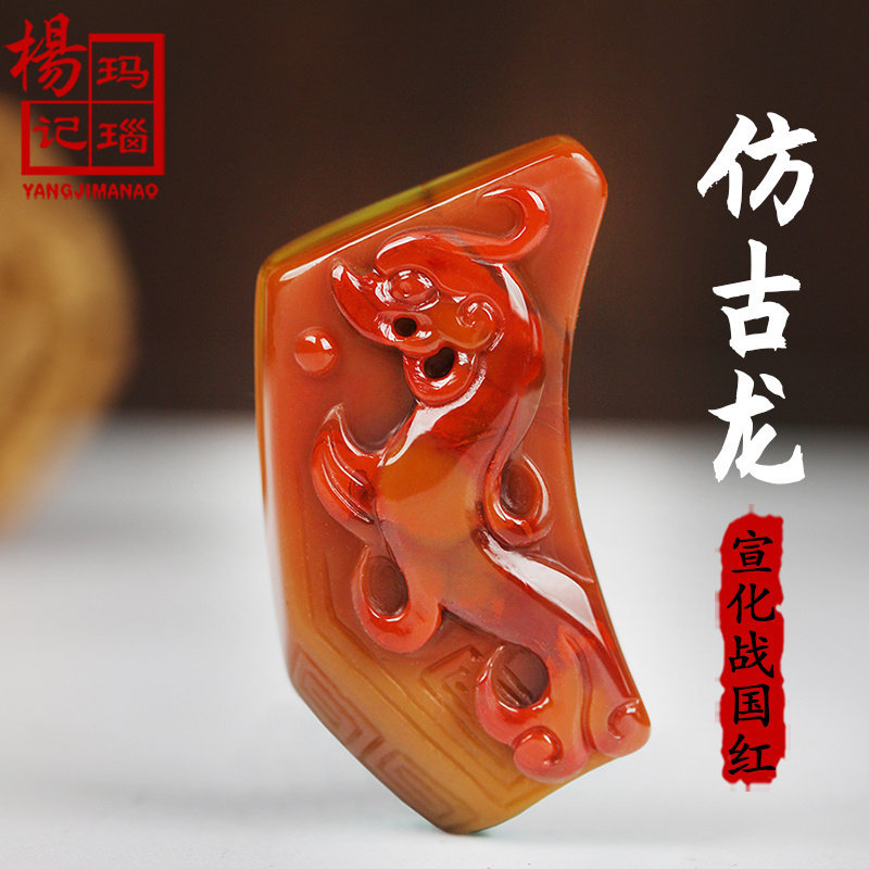 宣化战国红玛瑙吊坠仿古龙挂饰玉石雕刻饰品男女小巧玉佩配饰新品