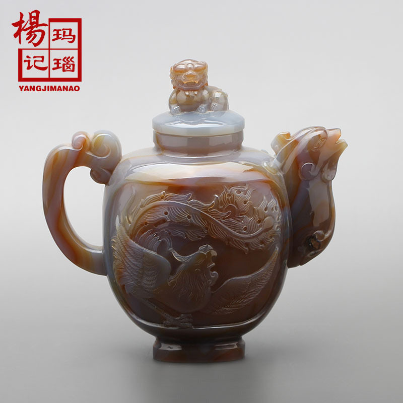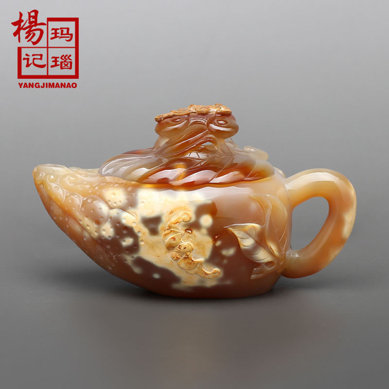 杨记精品天然玛瑙雕刻壶高端客厅摆件素活巧雕特色收藏艺术品