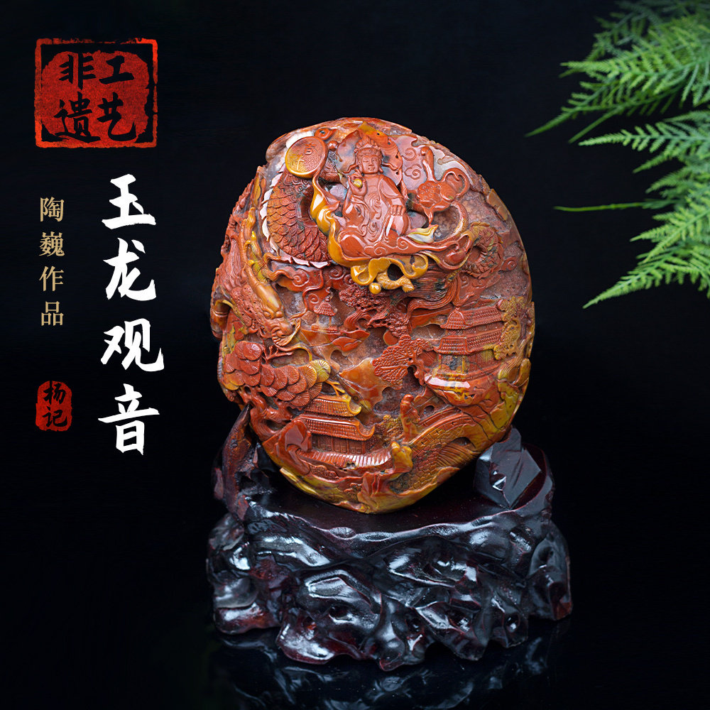 天然宣化战国红玛瑙摆件《玉龙观音》客厅收藏艺术品手工雕刻孤品