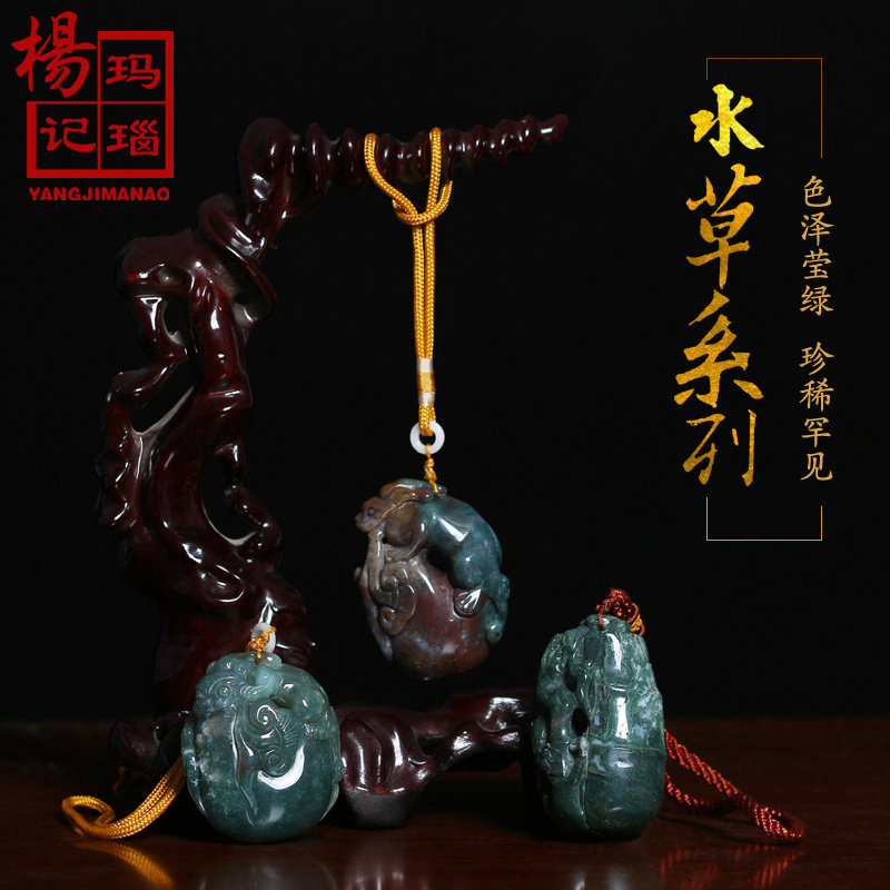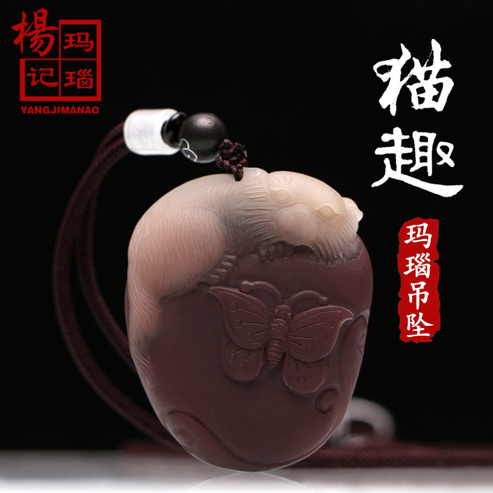 杨记天然紫绿纯原色玛瑙吊坠俏色巧雕猫趣男女挂饰项坠首饰雕件