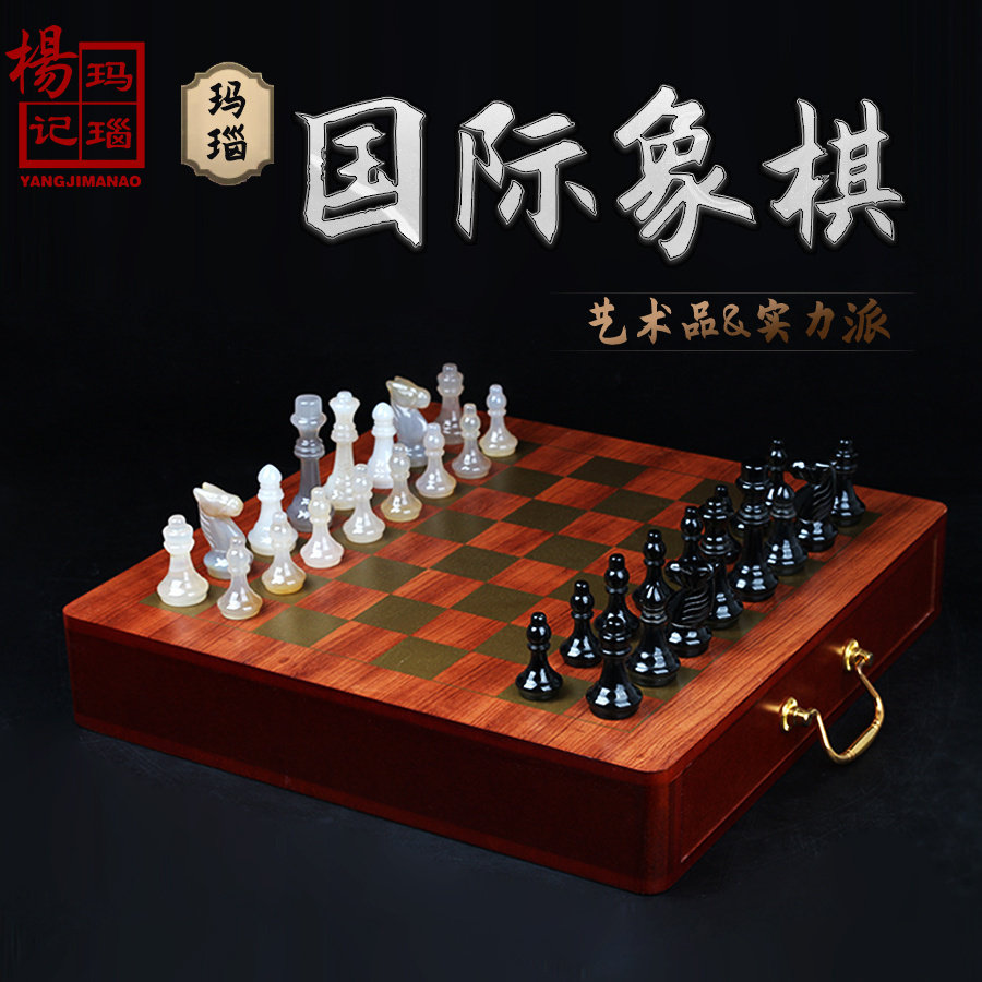 天然玛瑙高档国际象棋套装礼盒棋盘儿童成人大号棋子收藏送礼