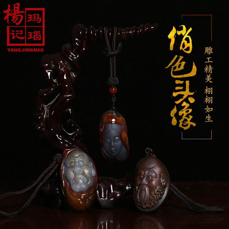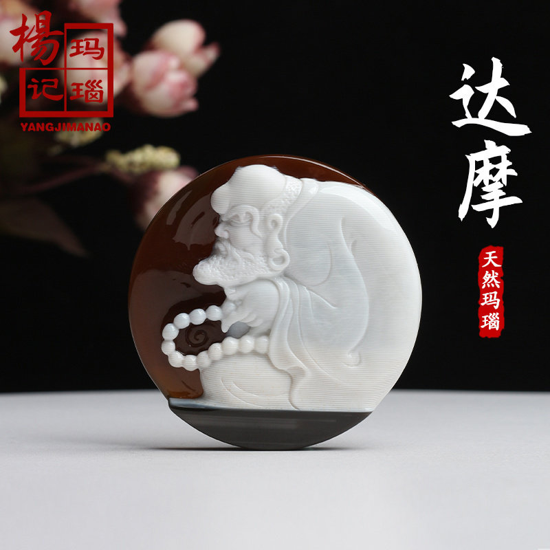 天然玛瑙 吊坠 达摩 俏色巧雕 精工手工雕刻配饰男款收藏送礼挂坠