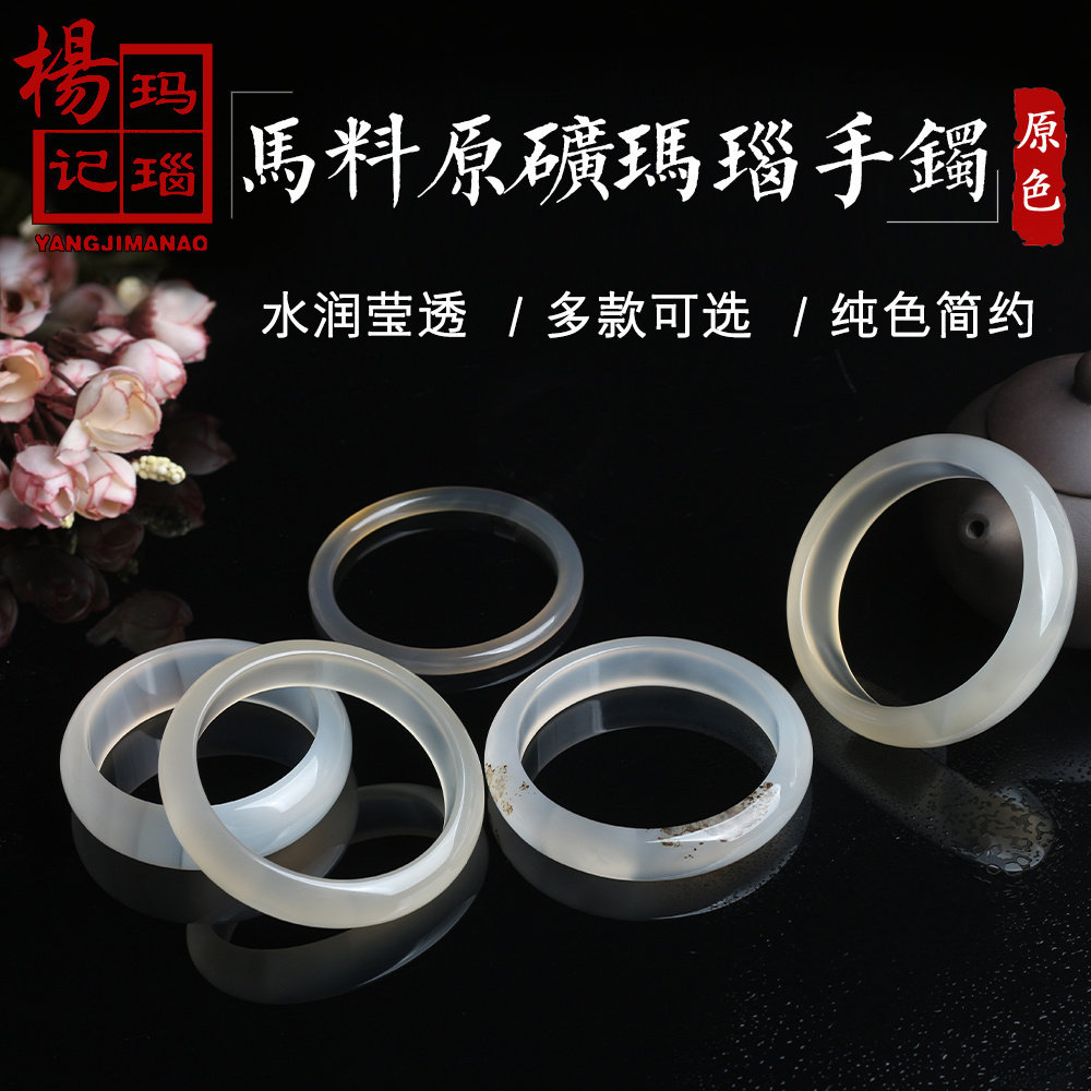 天然原色纯玛瑙玉髓手镯女款简约饰品清新浅色玉镯子珠宝闺蜜礼物
