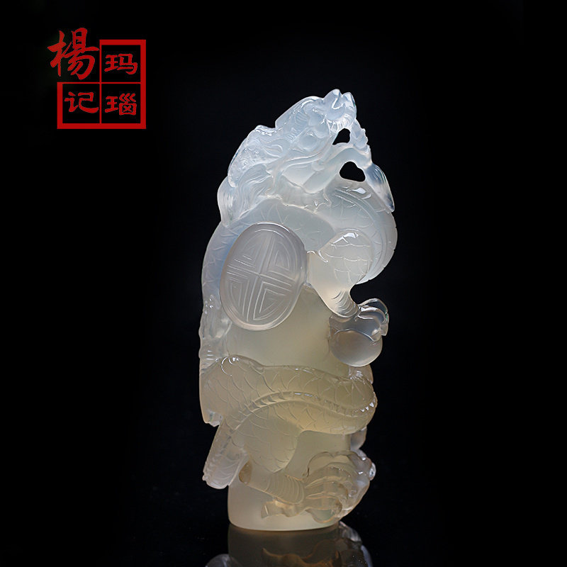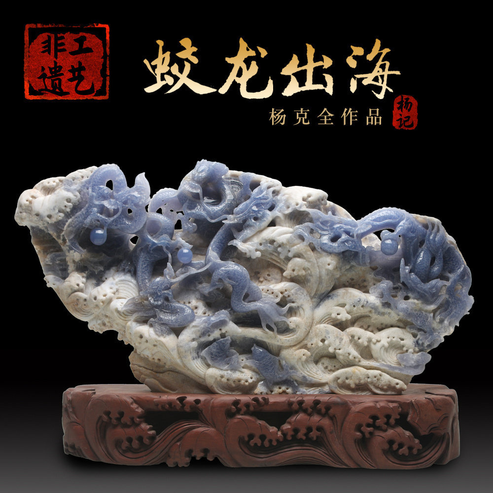 大型天然土耳其蓝玛瑙摆件《蛟龙出海》气势磅礴原石大师雕刻收藏