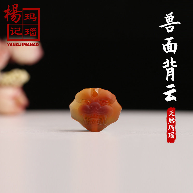 天然玛瑙兽面背云DIY配饰精雕古风文玩饰品