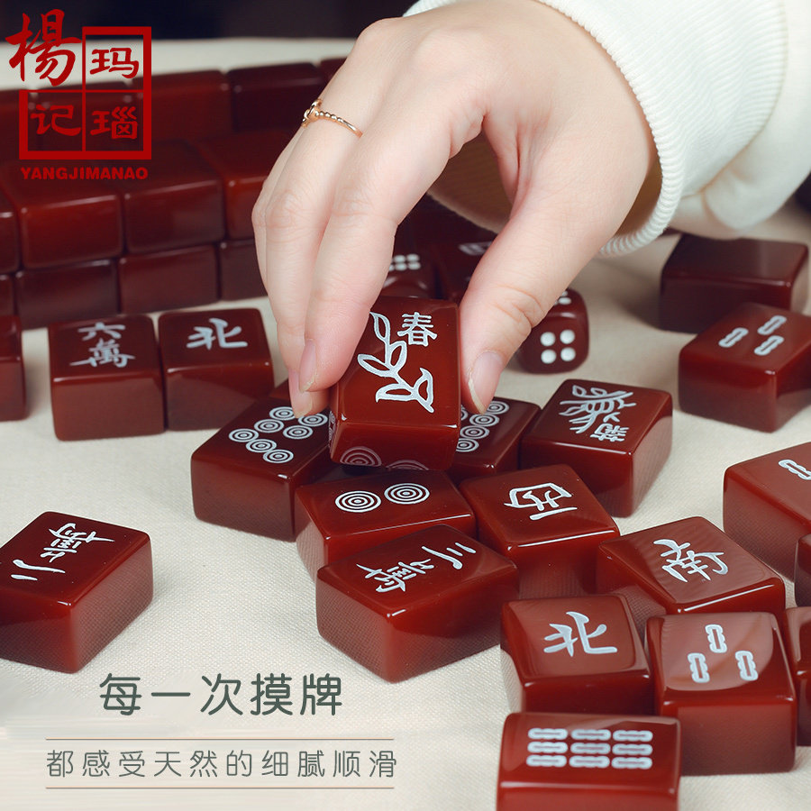 天然玛瑙麻将包邮家用玉石四川广东手搓大码麻将牌38大号送礼收藏
