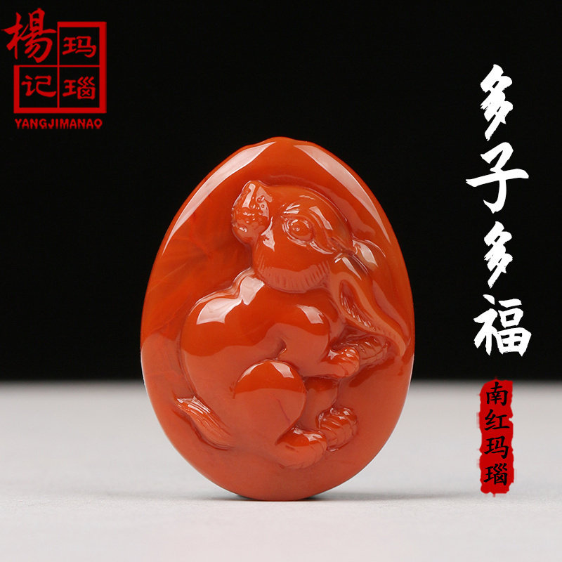 天然南红玛瑙雕刻吊坠生肖兔多子多福满肉无裂挂坠