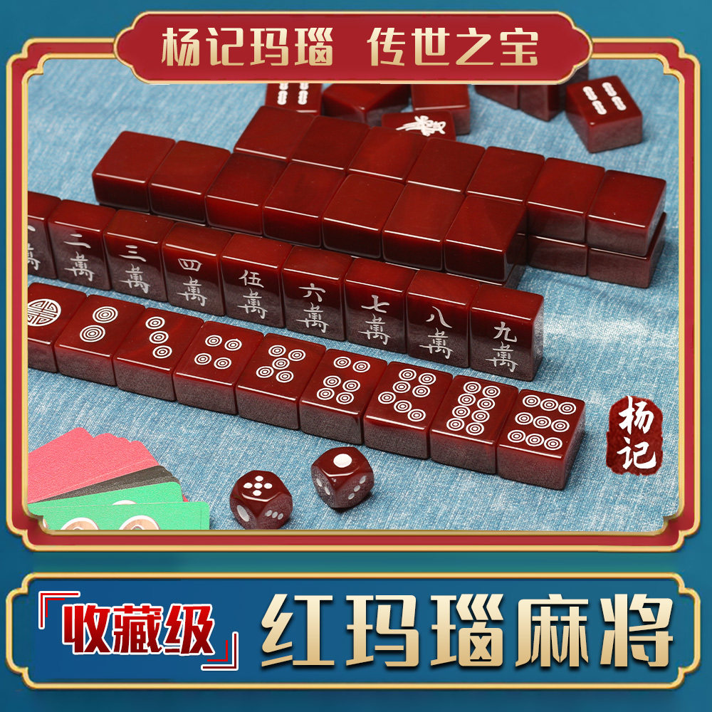 特级天然玛瑙麻将牌红色玉石礼盒手搓收藏家用大号送领导长辈礼物