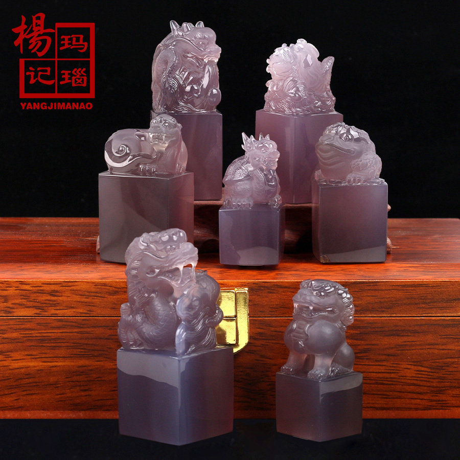 纯手工雕刻天然鸡玛瑙印章摆件6CM办公室书房客厅商务装饰艺术品