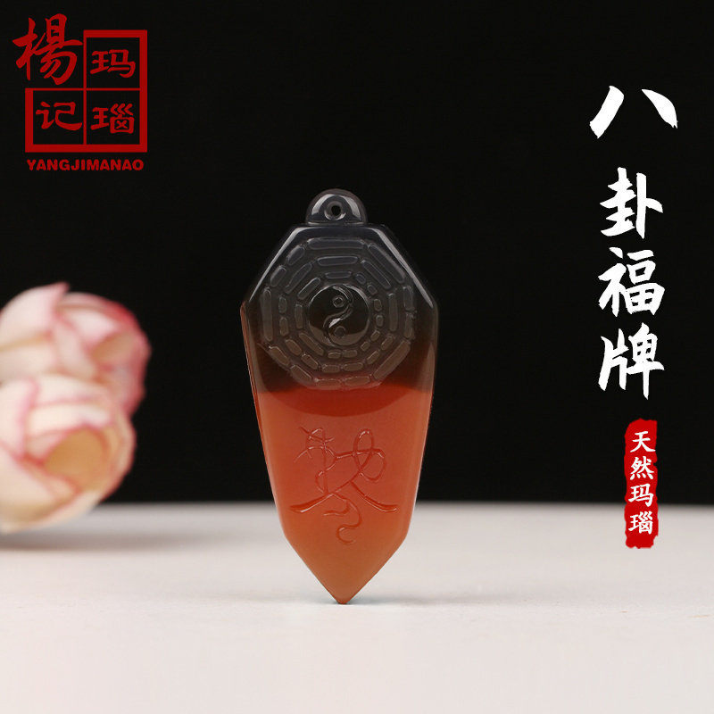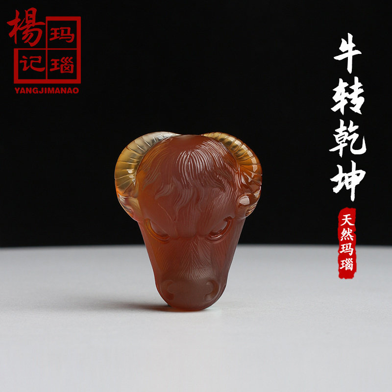 天然红玛瑙雕刻吊坠太极牛头 扭转乾坤生肖牛挂坠本命年配饰