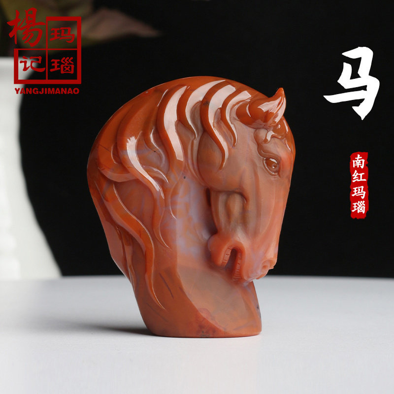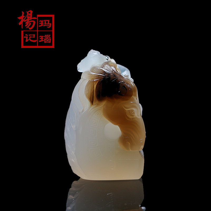 天然玛瑙印章马上封侯俏色名师设计纯手工雕刻玛瑙摆件书房艺术品
