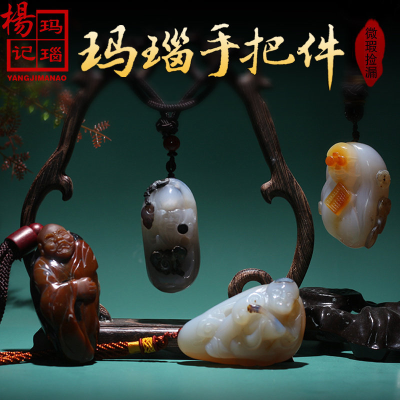 天然玛瑙把件微瑕捡漏特价寿星貔貅招财童子手玩件送男友长辈礼物