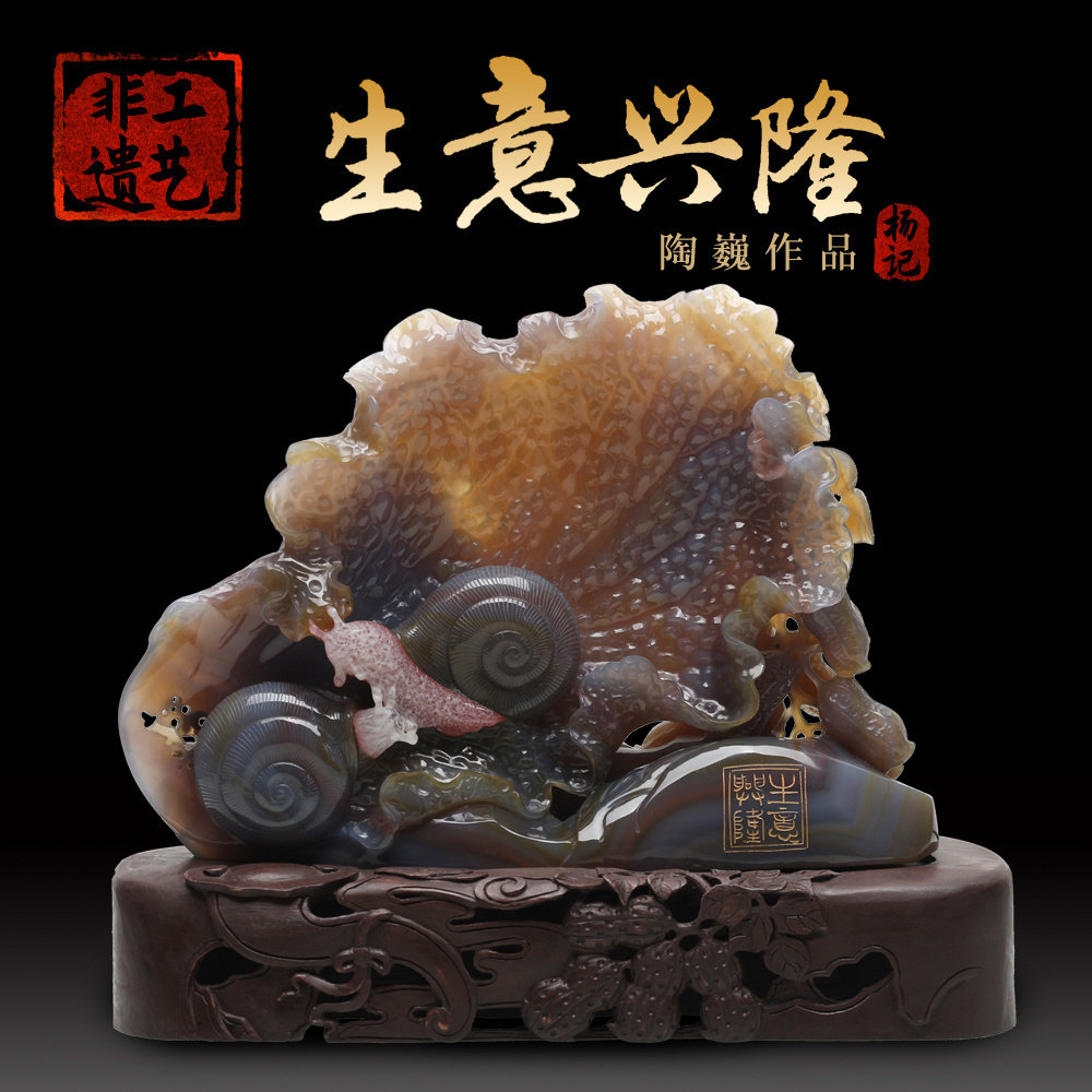 天然玛瑙摆件《生意兴隆》百财白菜公司办公室收银台店铺开业礼物