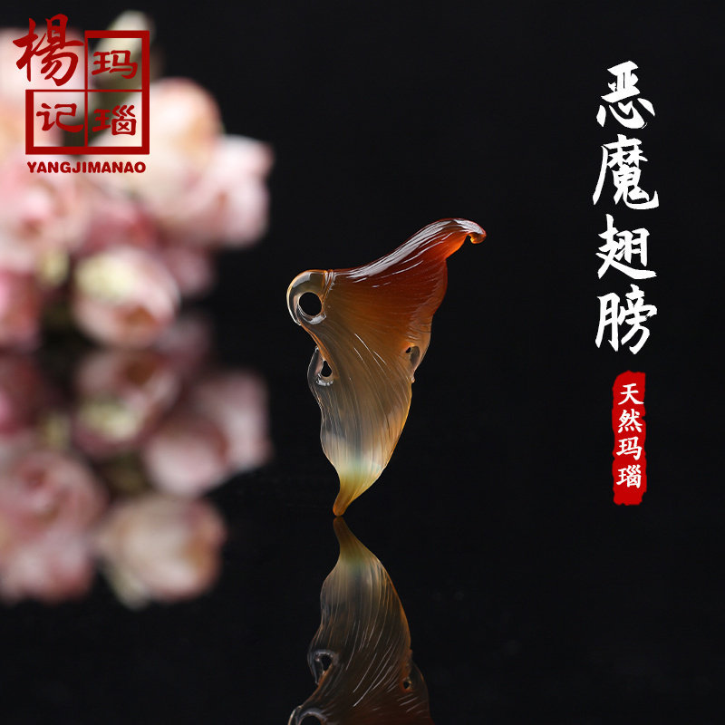 手工雕刻吊坠恶魔翅膀天然红玛瑙挂坠情侣项链