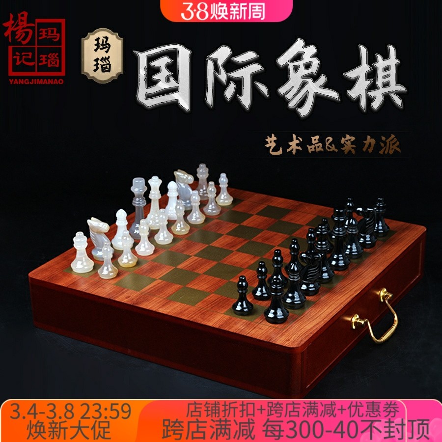 天然玛瑙高档国际象棋套装礼盒棋盘儿童成人大号棋子收藏送礼