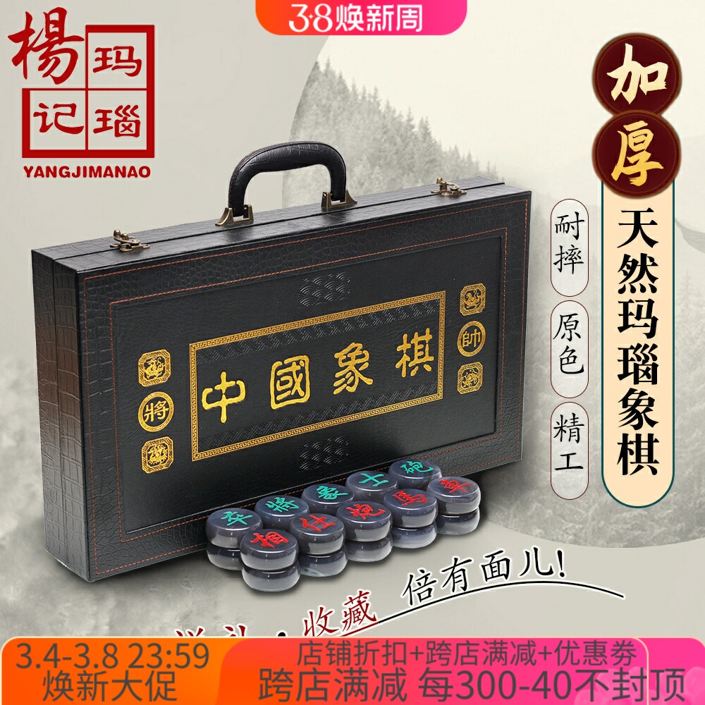 高级天然玛瑙象棋玉石中国象棋套装儿童棋盘送长辈收藏父亲节送礼