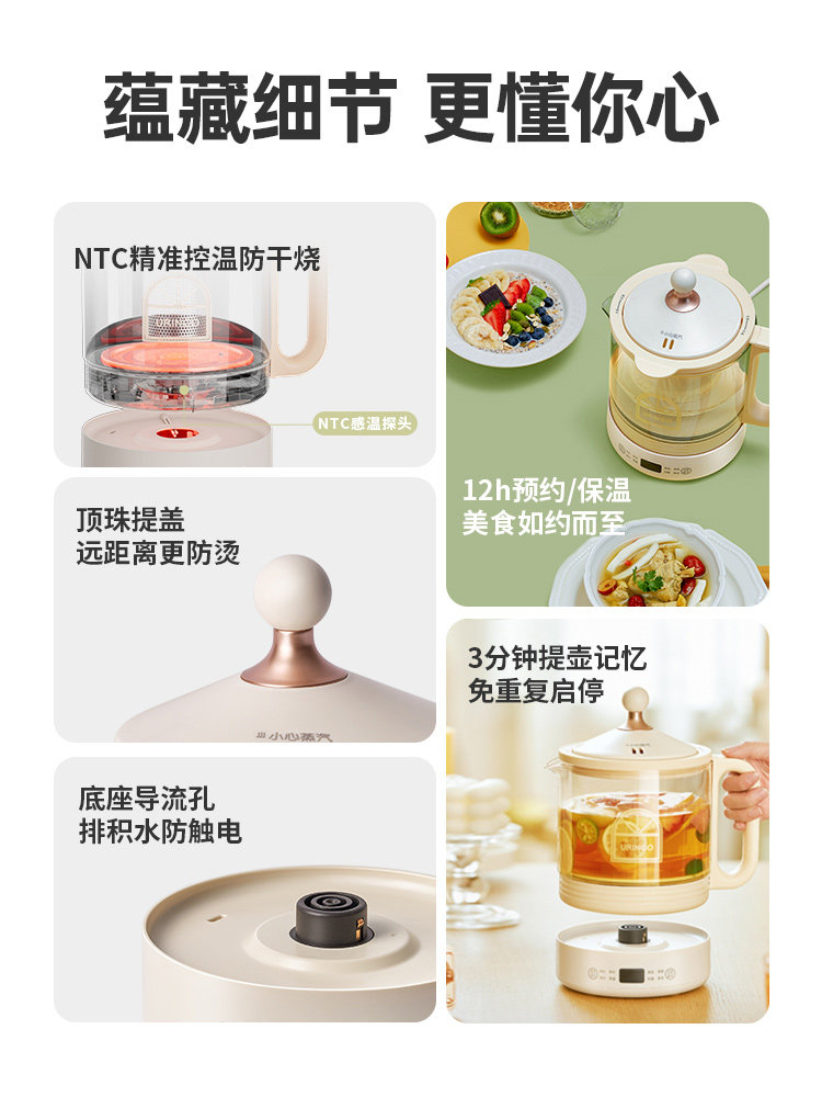 七彩叮当养生壶家用多功能花茶炖煮小型分体式玻璃煮茶壶恒温水壶